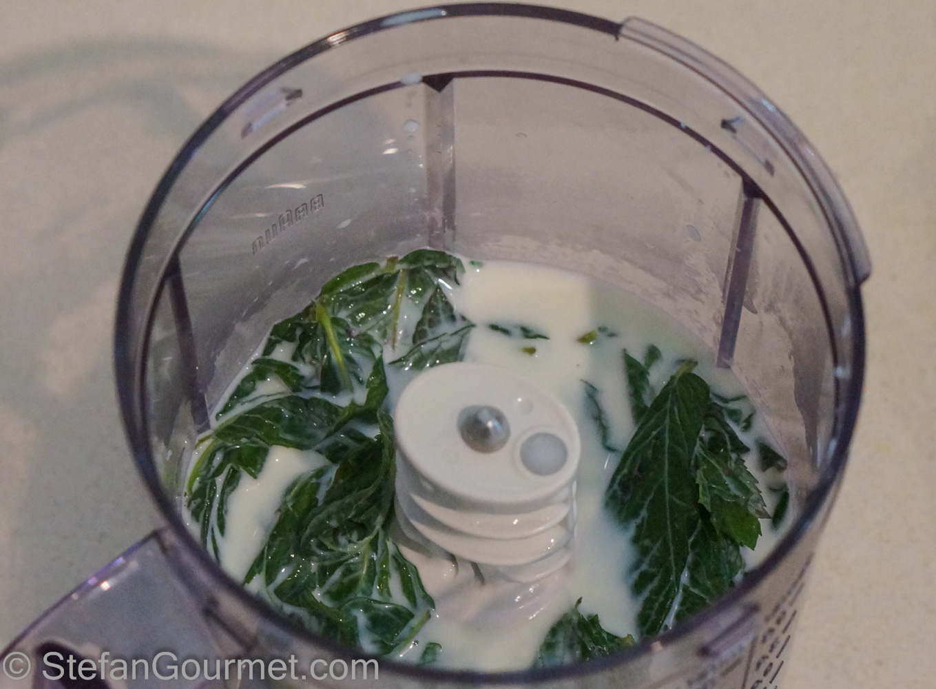 Transfer the milk and mint to the blender.