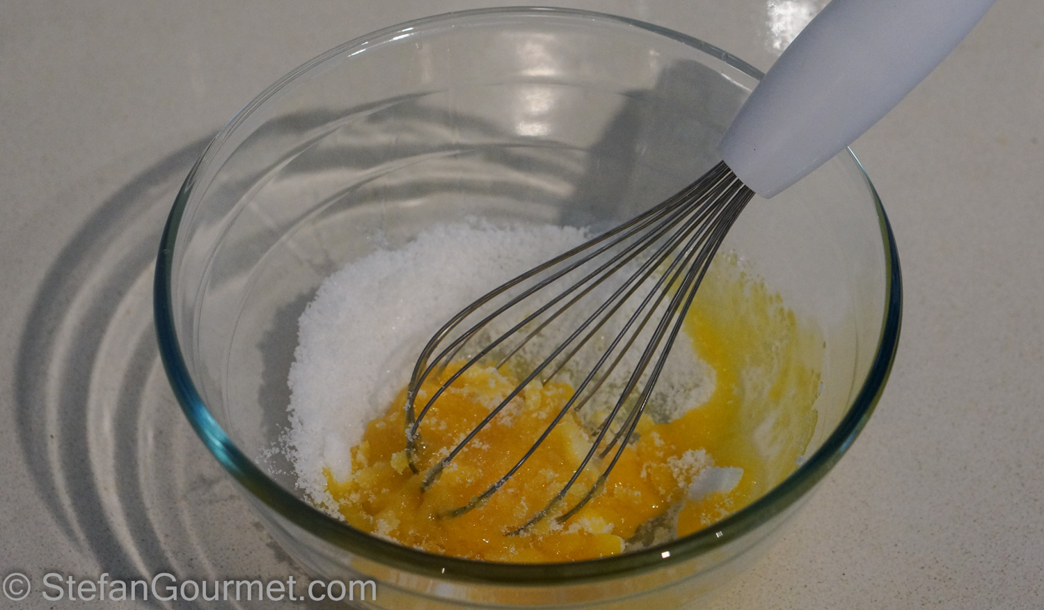 Combine the egg yolks and the sugar in a bowl.
