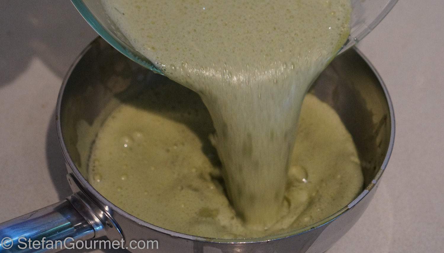 Add the mint-infused milk to the egg yolks and sugar (assuming that it in the meantime it has cooled off below 60ºC/140ºF so it won’t cook the egg yolks).