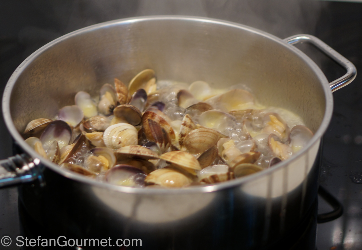 1 kg (2.2 lbs) vongole or other small clams, soaked for an hour in salt water