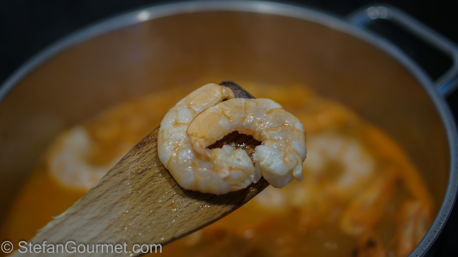 Cook the shrimp in the shrimp stock (or in salted water if not making shrimp stock) just until they change color. Do not cook them longer than necessary to keep them tender.