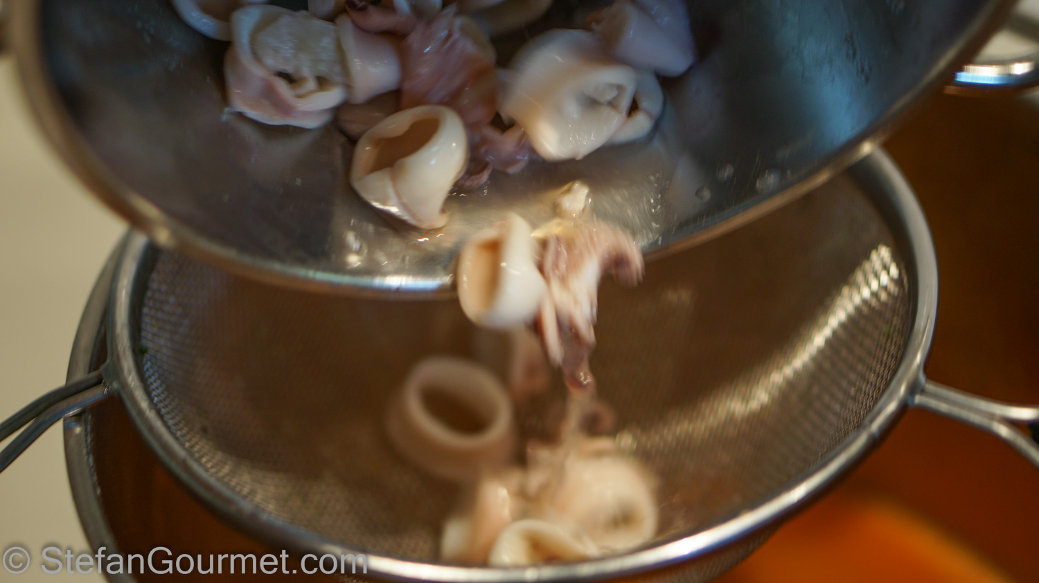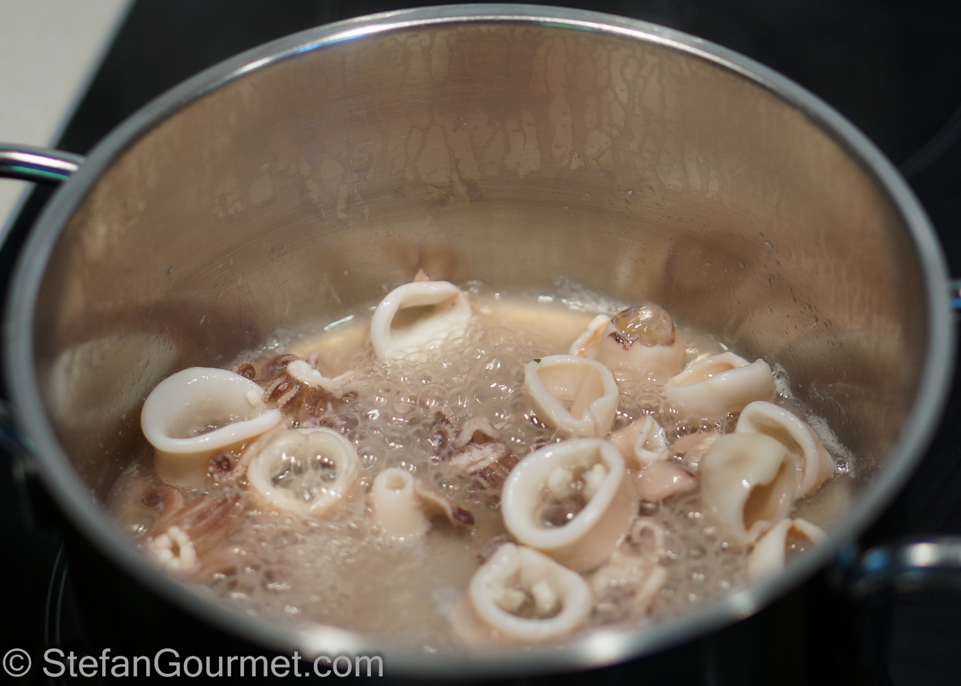 Optional: reserve the squid cooking juices for cooking the rice.