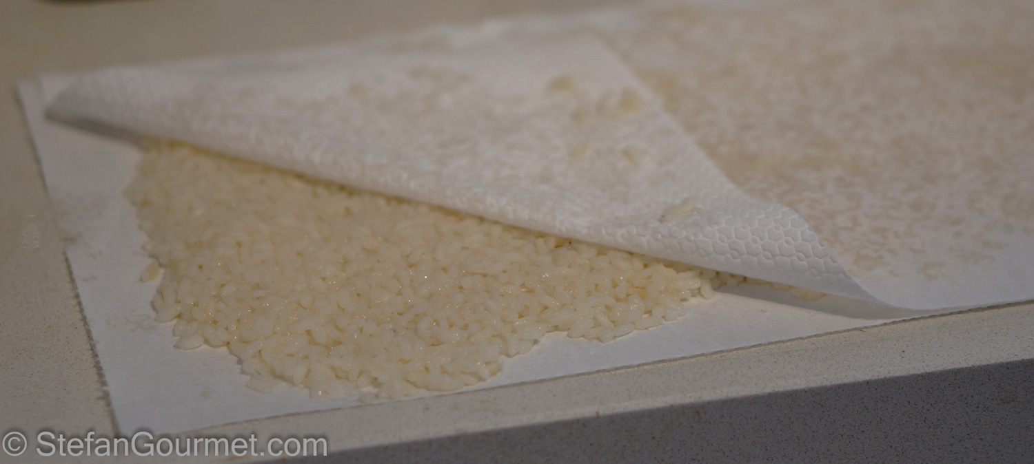 Pat the rice dry with paper towels.