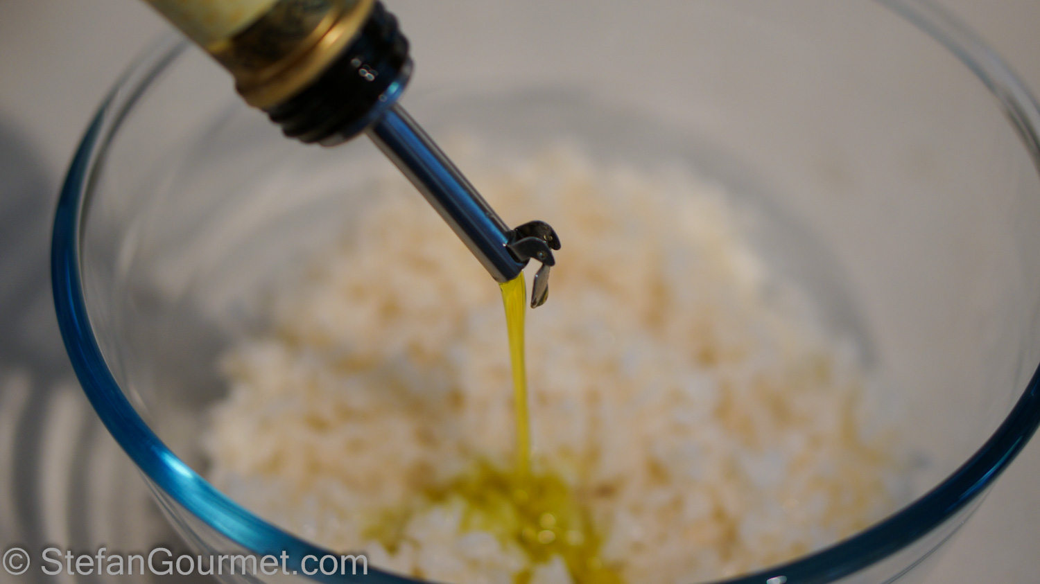 Stir a bit of olive oil into the rice to prevent it from sticking together.