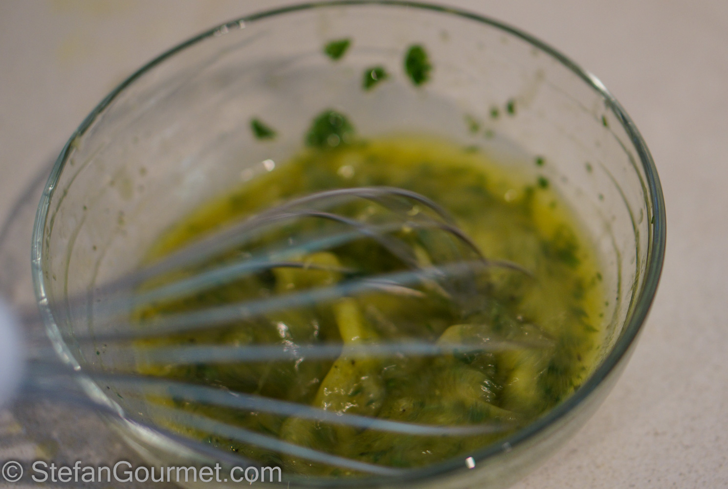 Combine the ingredients for the dressing in a bowl.