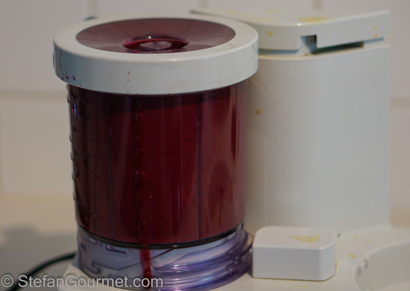 After enjoying pigeon with cherries at Povero Diavolo, I thought it would be nice to create my own version of it. I made a sauce of pureed cherries and reduced pigeon stock. For some more cherry flavor I deglazed the pan with Kirsch after browning the meat, but still the sauce didn’t have a very distinct cherry flavor. However, it was delicious, had great depth of flavor, and worked very well with the pigeon (which I had cooked sous-vide). Just like strawberry jam does not taste like fresh strawberries, a cooked cherry sauce doesn’t taste like fresh cherries. Still, it was so good that I will definitely make this again. I bet this will also be excellent made with blackberries (but then the sauce would need to be sieved to remove the seeds).