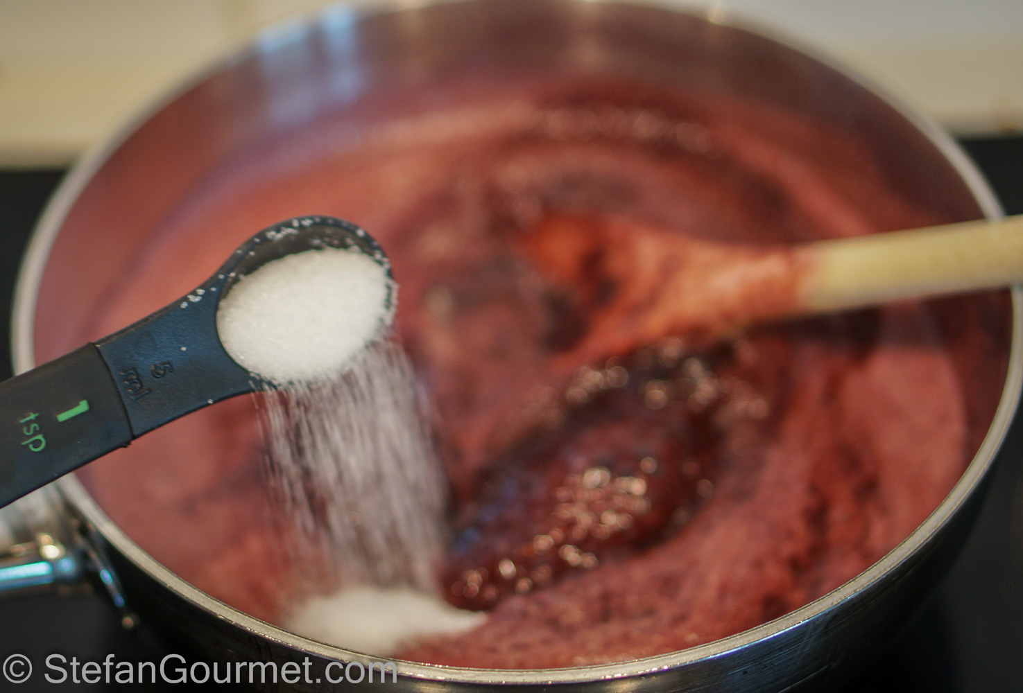 Put the cherry puree in saucepan and bring to a boil. You may need to add some sugar depending on the ripeness of the cherries and your preference.