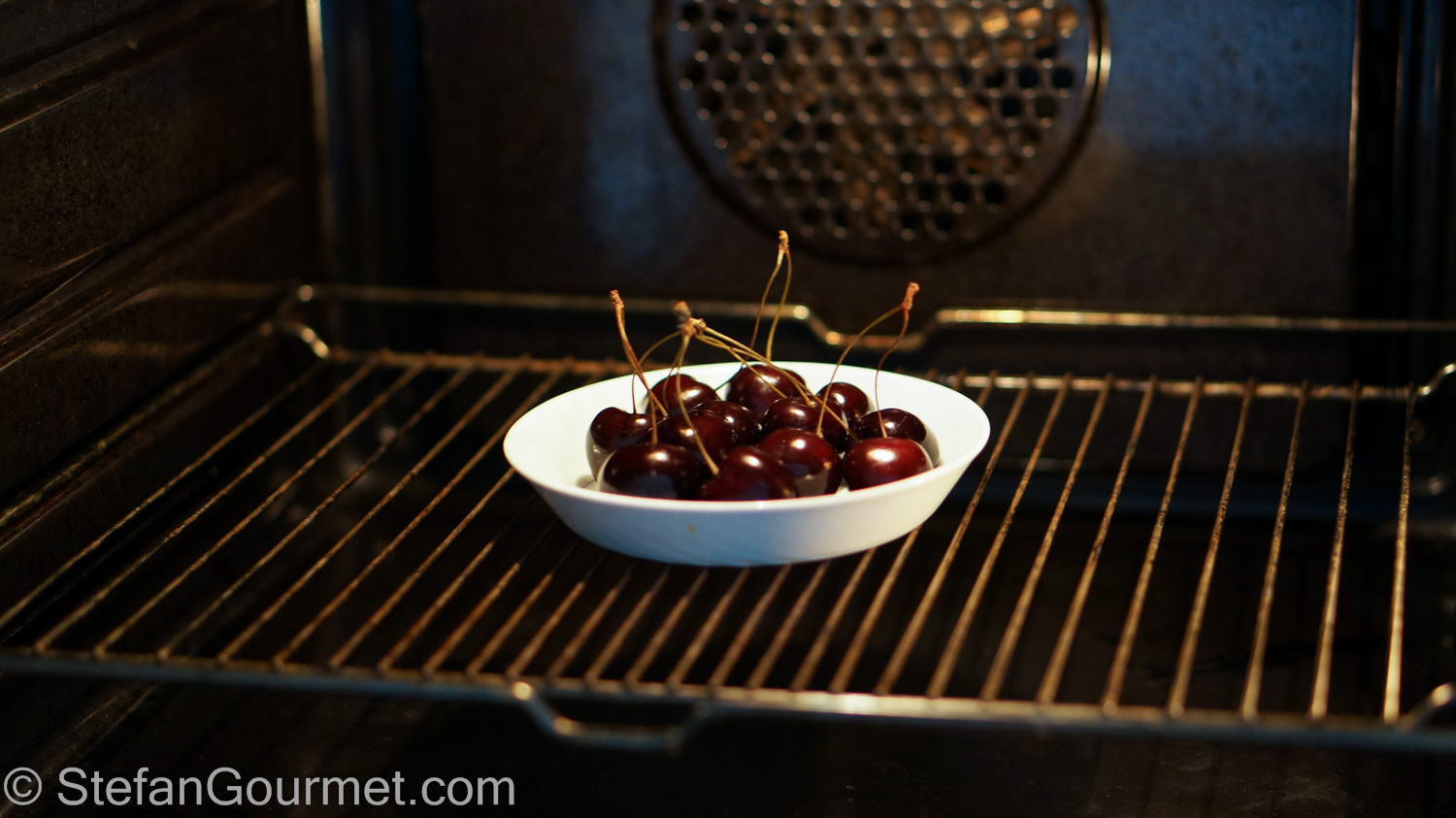 Warm up the cherries in the oven (at 180ºC/350ºF) for a couple of minutes.