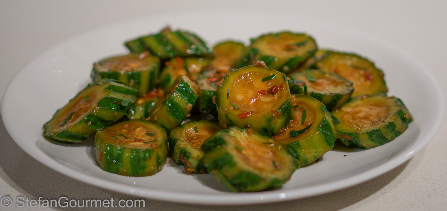 6. I’m in Asian markets often, Stefan, and have seen these which-a-ma-callits very often. Unlike you, though, I haven’t the nerve to pick one up and bring it home. Your preparation sounds great and I like that you only partially removed the skin. It adds interest to the final dish, as well as the crunch you mentioned.