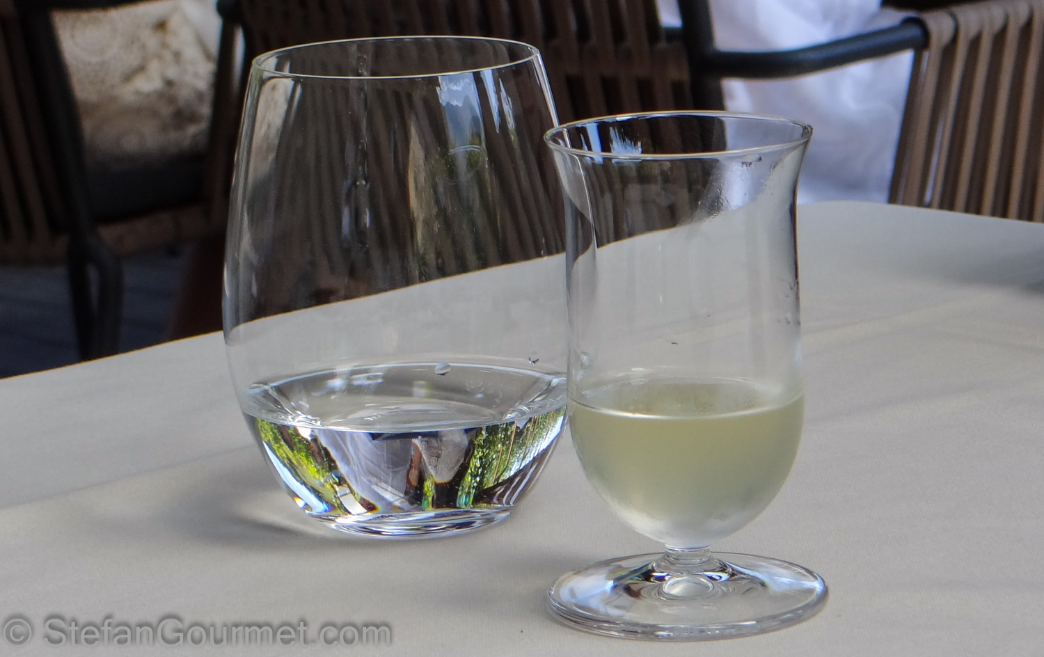 The aperitif is on the right — we expected something alcoholic but it was actually some kind of vegetable juice with a whisp of smokiness and very nice indeed.