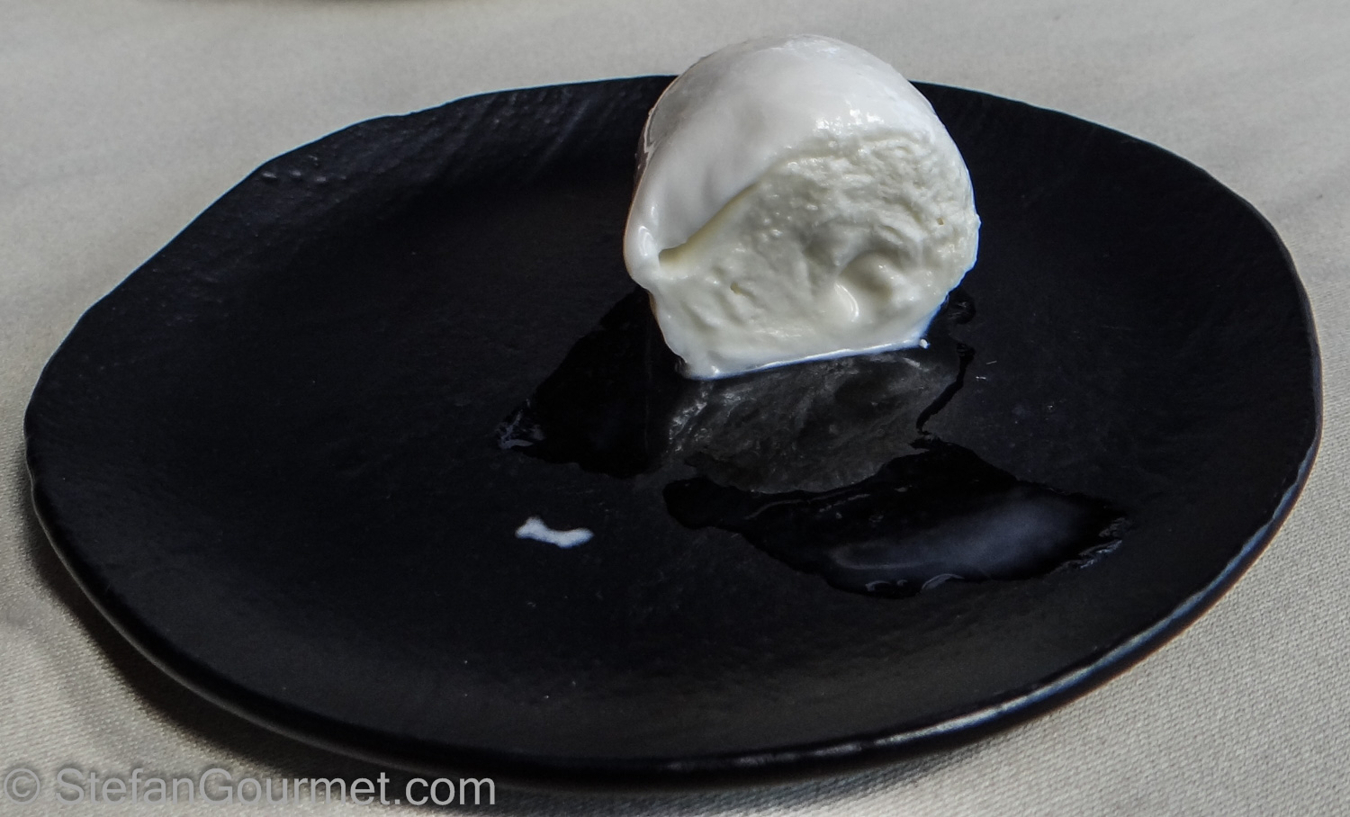 Etxebarri have their own buffalos, whose milk they use to make their own daily fresh buffalo mozzarella. I’ve tasted day-fresh buffalo mozzarella in Campania, so I immediately recognized the texture of truly fresh buffalo mozzarella. (When he had bought it fresh from a cheese maker in Campania and didn’t finish all of it, the next day the special texture had already disappeared). The texture is more chewy and interesting than buffalo mozzarella that is from the previous day or older.