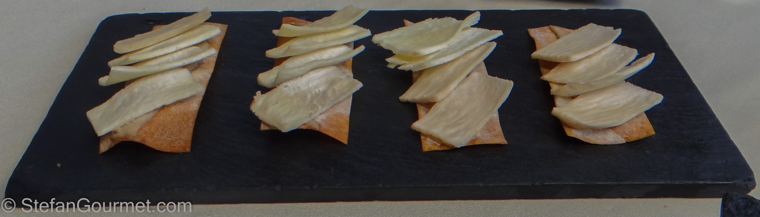 The final appetizer: very thin crackers with raw, extremely fresh, porcini mushrooms!