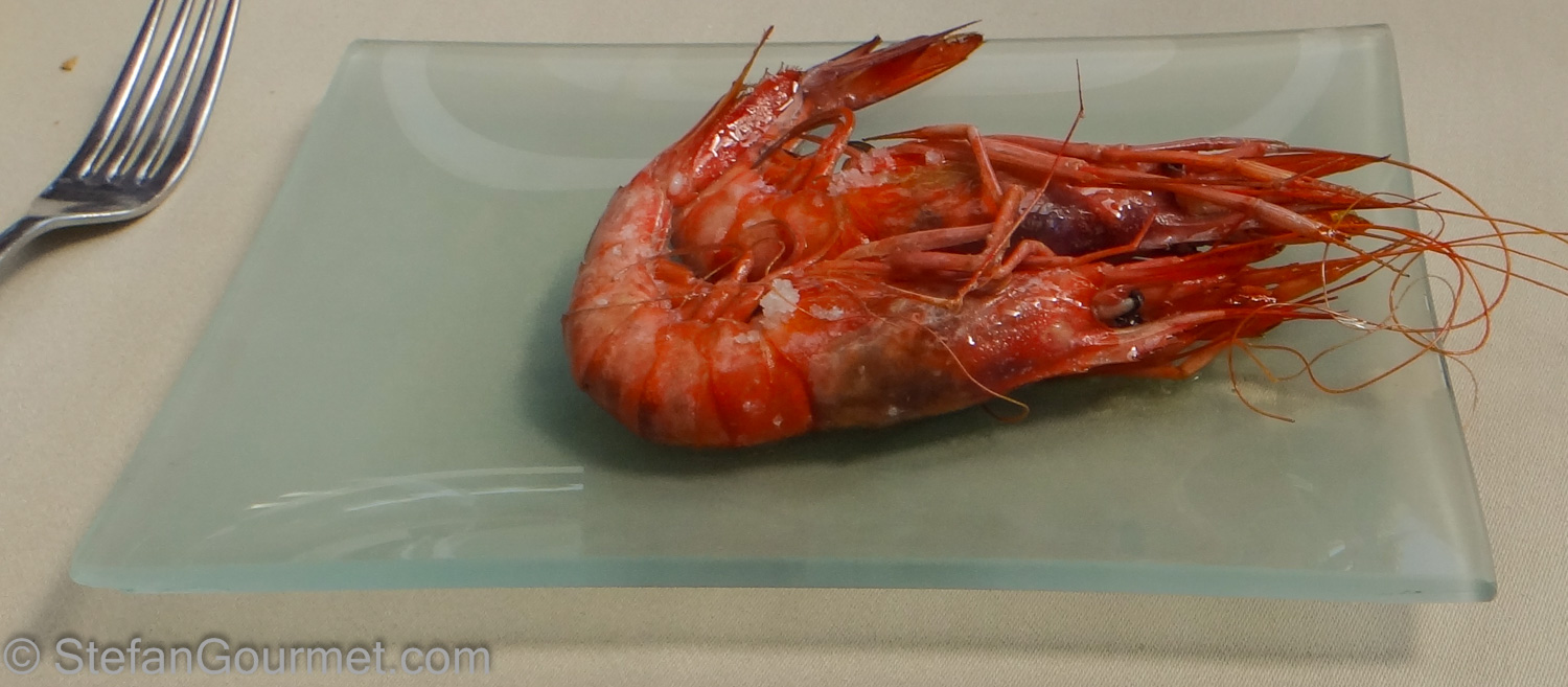 The prawns from Palamós (Costa Brava) were grilled and served with coarse sea salt. They were grilled perfectly and still tender and juicy. 9/10