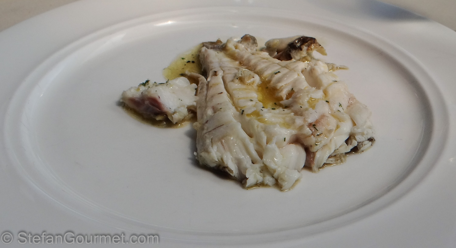 The whole fish was shown at the table before serving on separate plates.