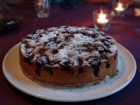 This simple but delicious cherry cake looks like clafoutis, but it is more cake and less flan than a clafoutis.