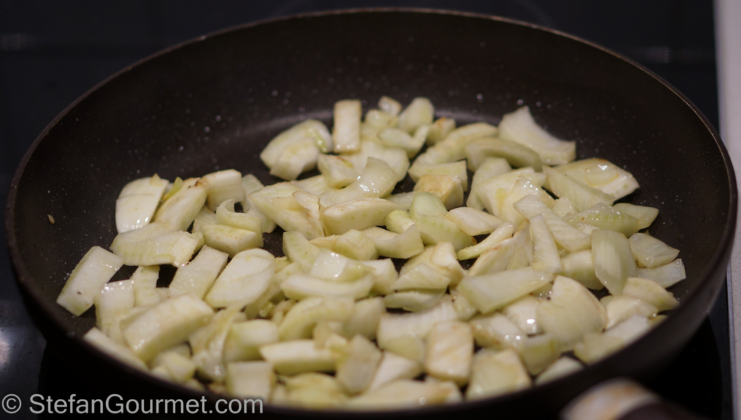Cover the fennel and cook over medium heat for about 5 minutes.