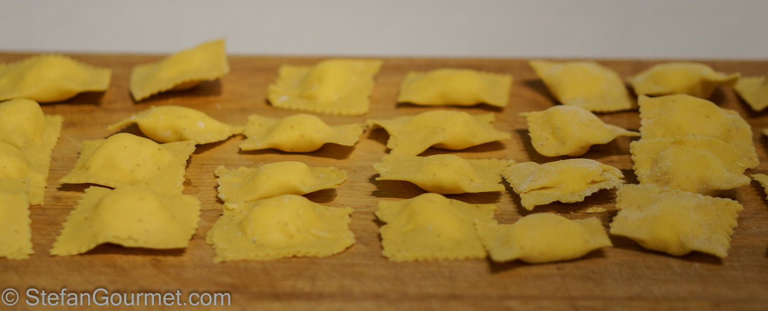 These ravioli look a bit unusual because this is gluten free pasta dough. More about that soon…