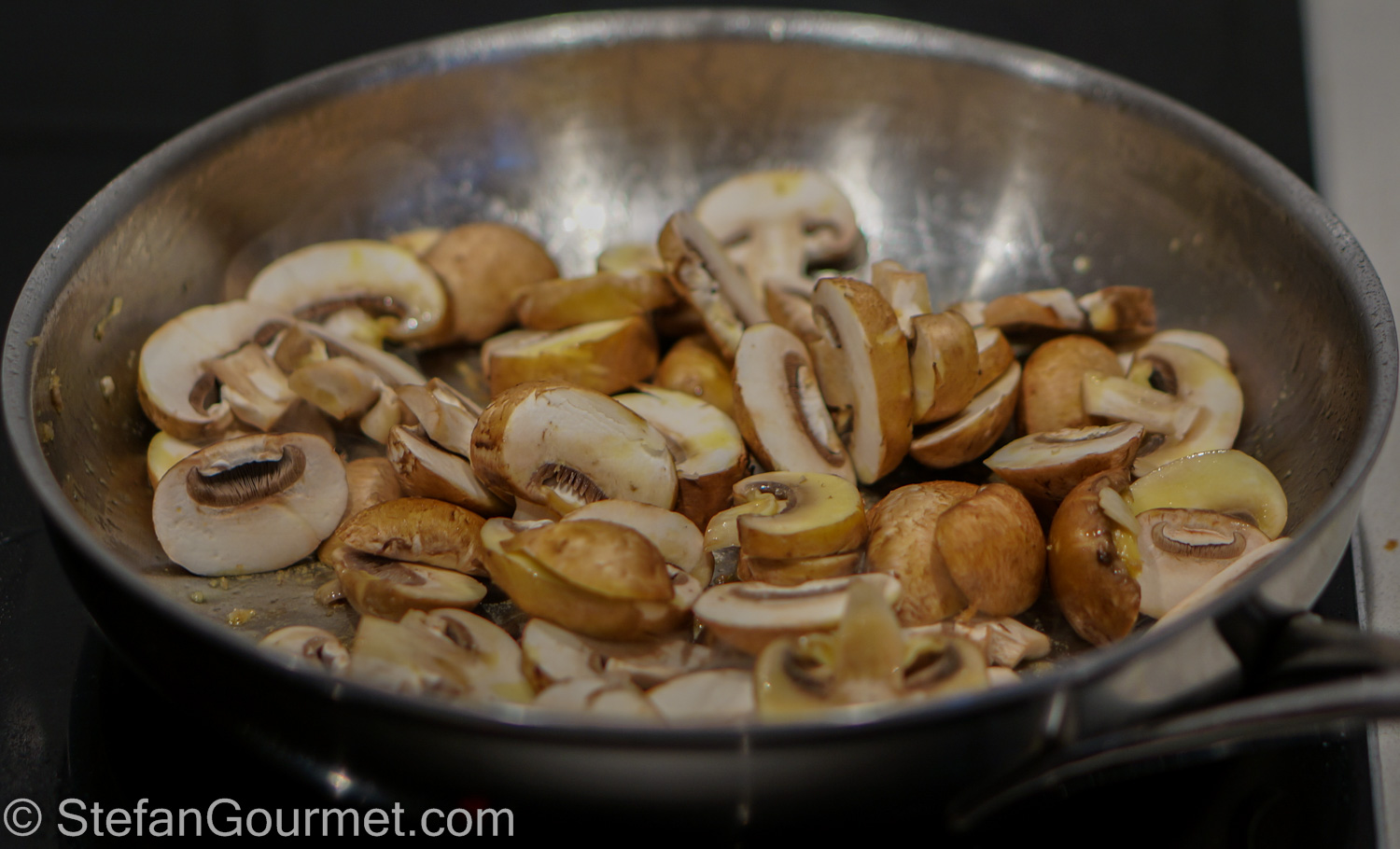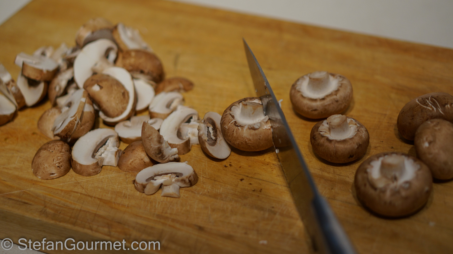 Start by slicing the mushrooms.