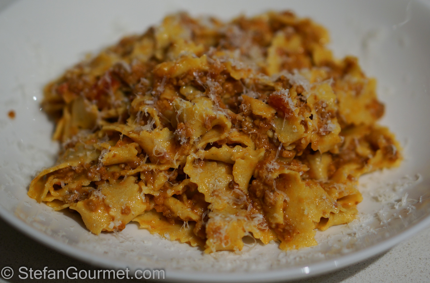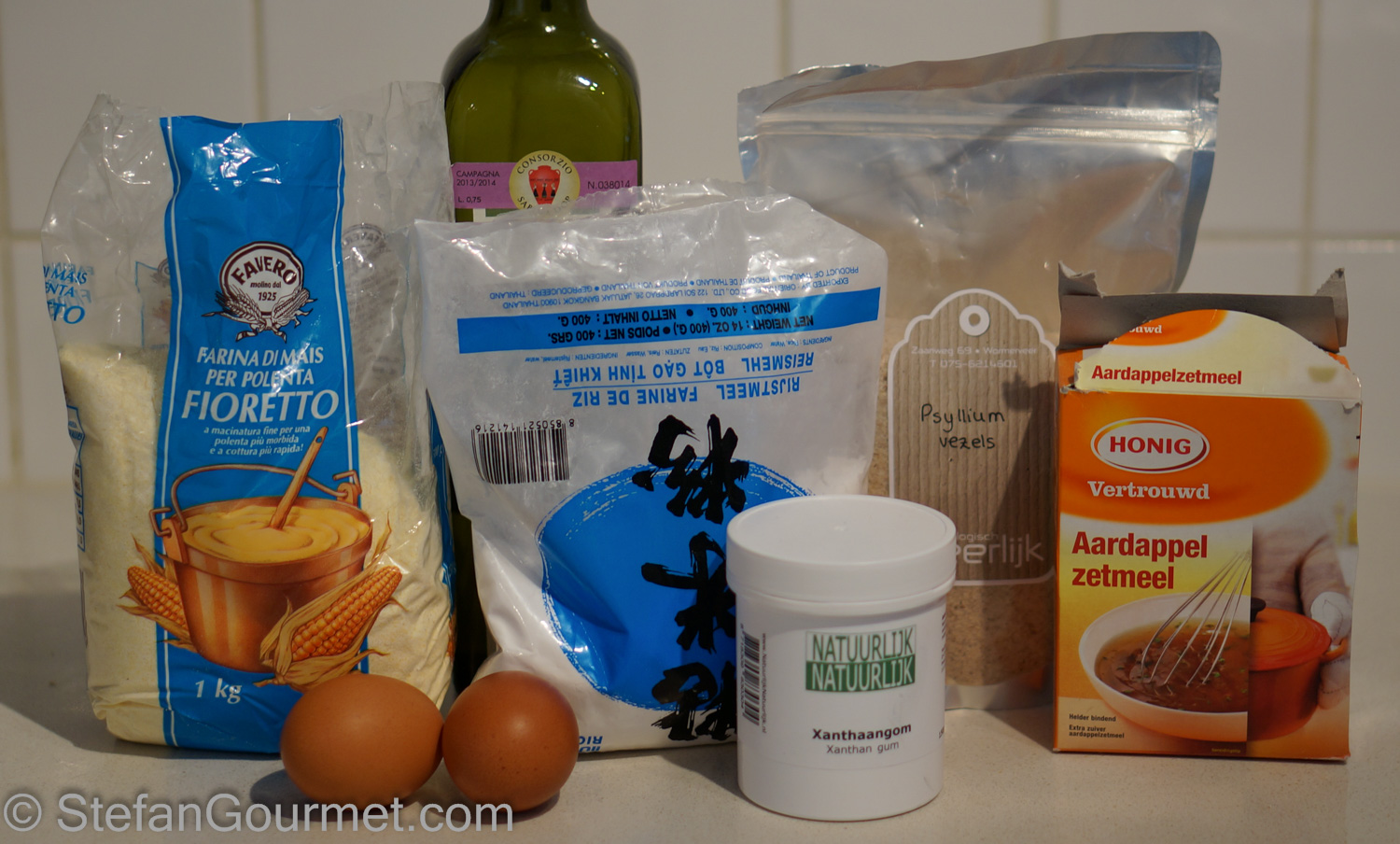 This looks like a perfectly normal plate of Tagliatelle alla Bolognese. But in fact it is not, because these homemade tagliatelle have been made without gluten. A friend who suffers from celiac disease was coming over for dinner, and I decided not to take the easy way out (by simply eliminating baked goods and homemade pasta by cooking an Asian dinner for her) but to give her a full Italian dinner like I prepare for all my friends and family. Since I had never experimented with gluten free baking and pasta making before, I wanted to experiment a little beforehand to make sure that I would be able to serve something decent. And so I experimented with gluten free bread and gluten free fresh pasta dough.
