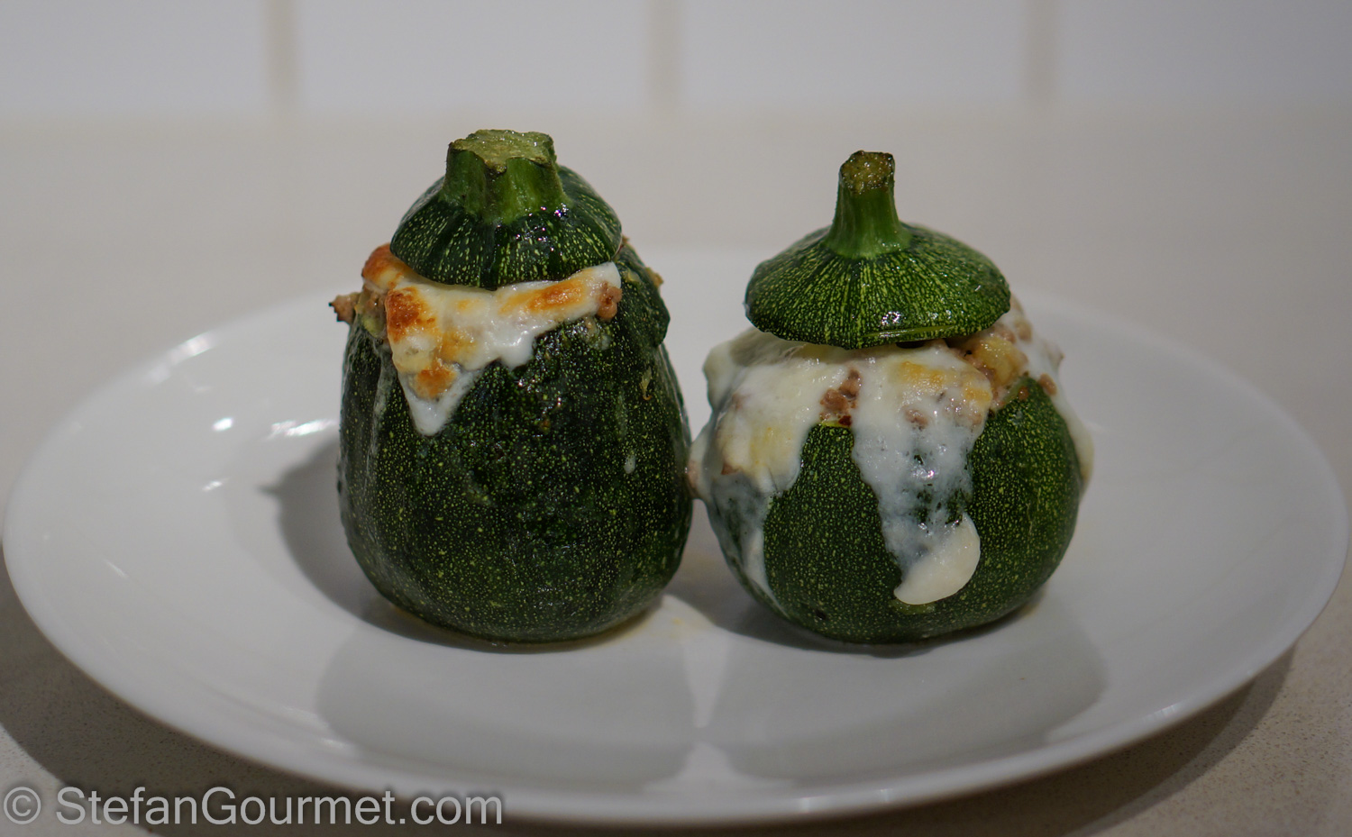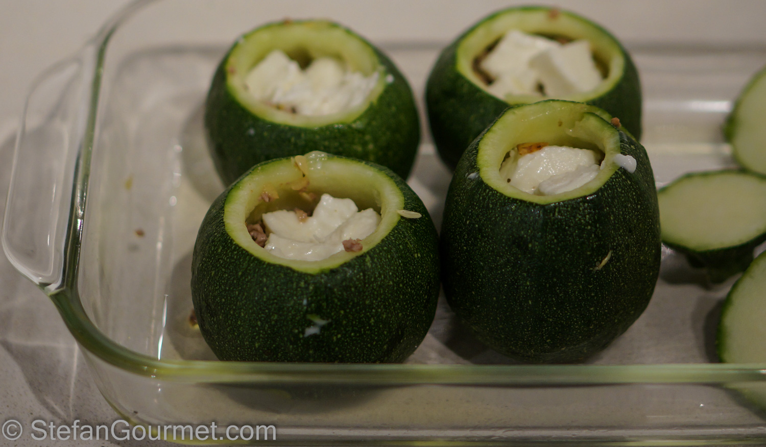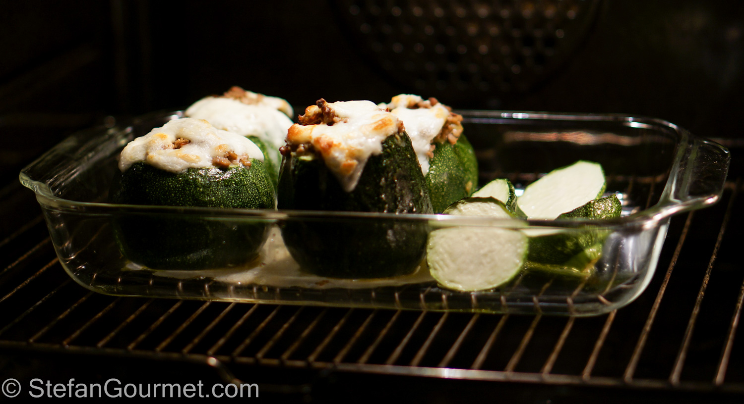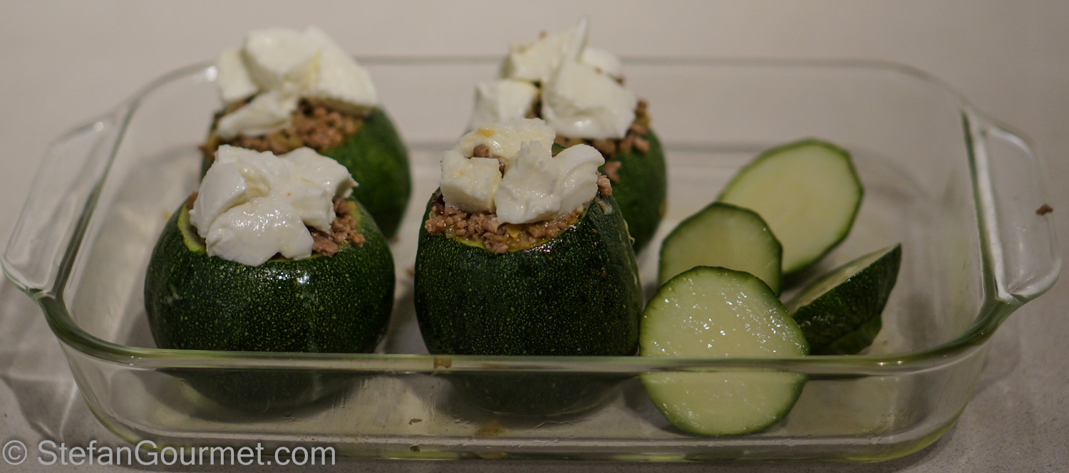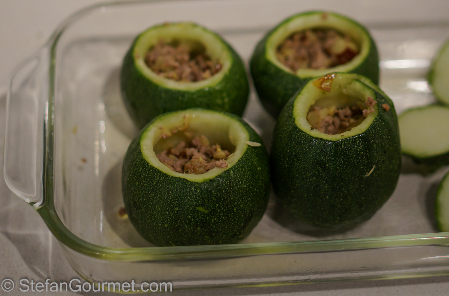 Stuff the zucchini with half of the meat mixture, pressing down on the meat to get as much in there as you can.