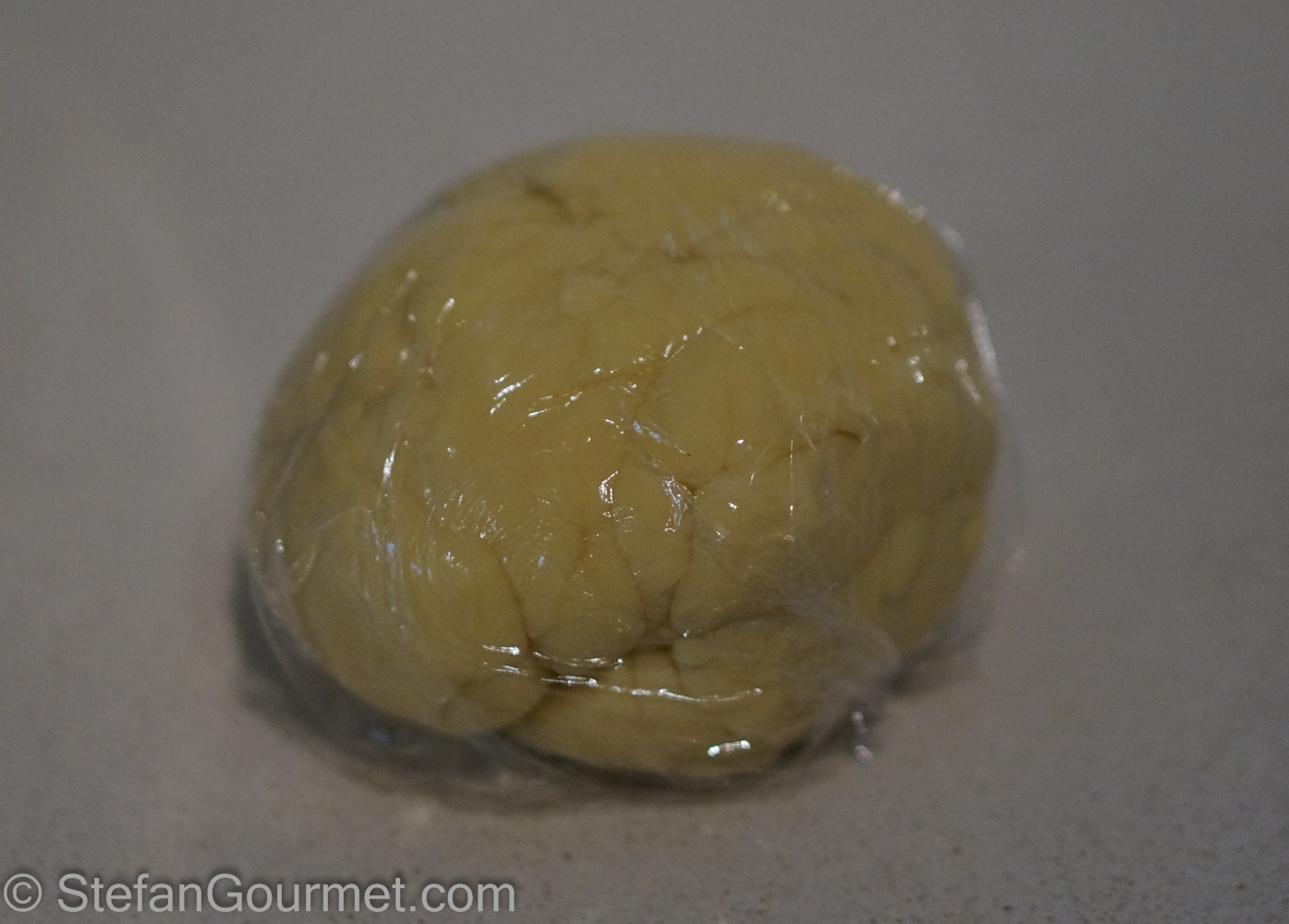 Wrap the dough in cling film and allow to rest for half an hour outside of the refrigerator.
