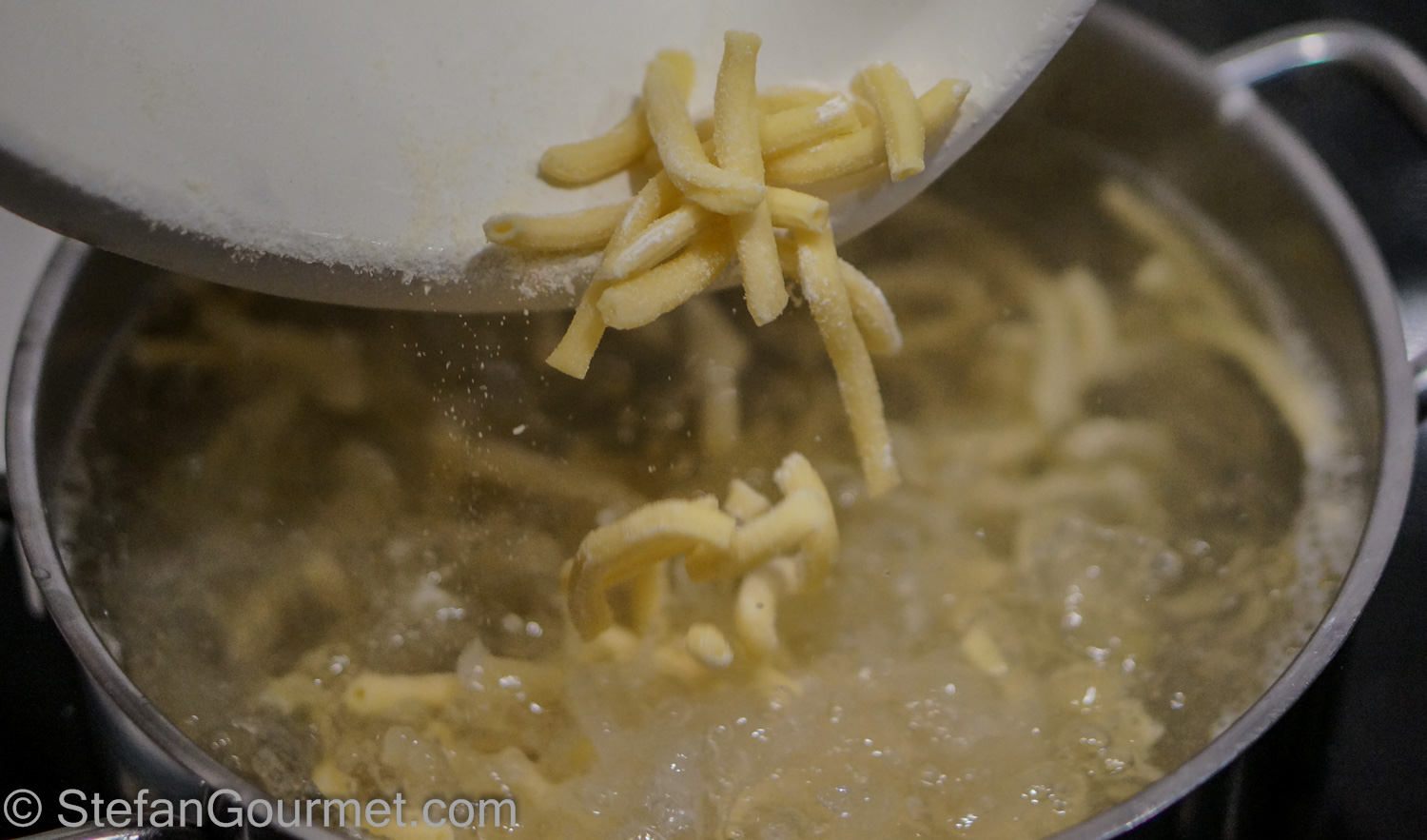 Make sure a large pot of water boils by the time you are finished making all of the gramigna.
