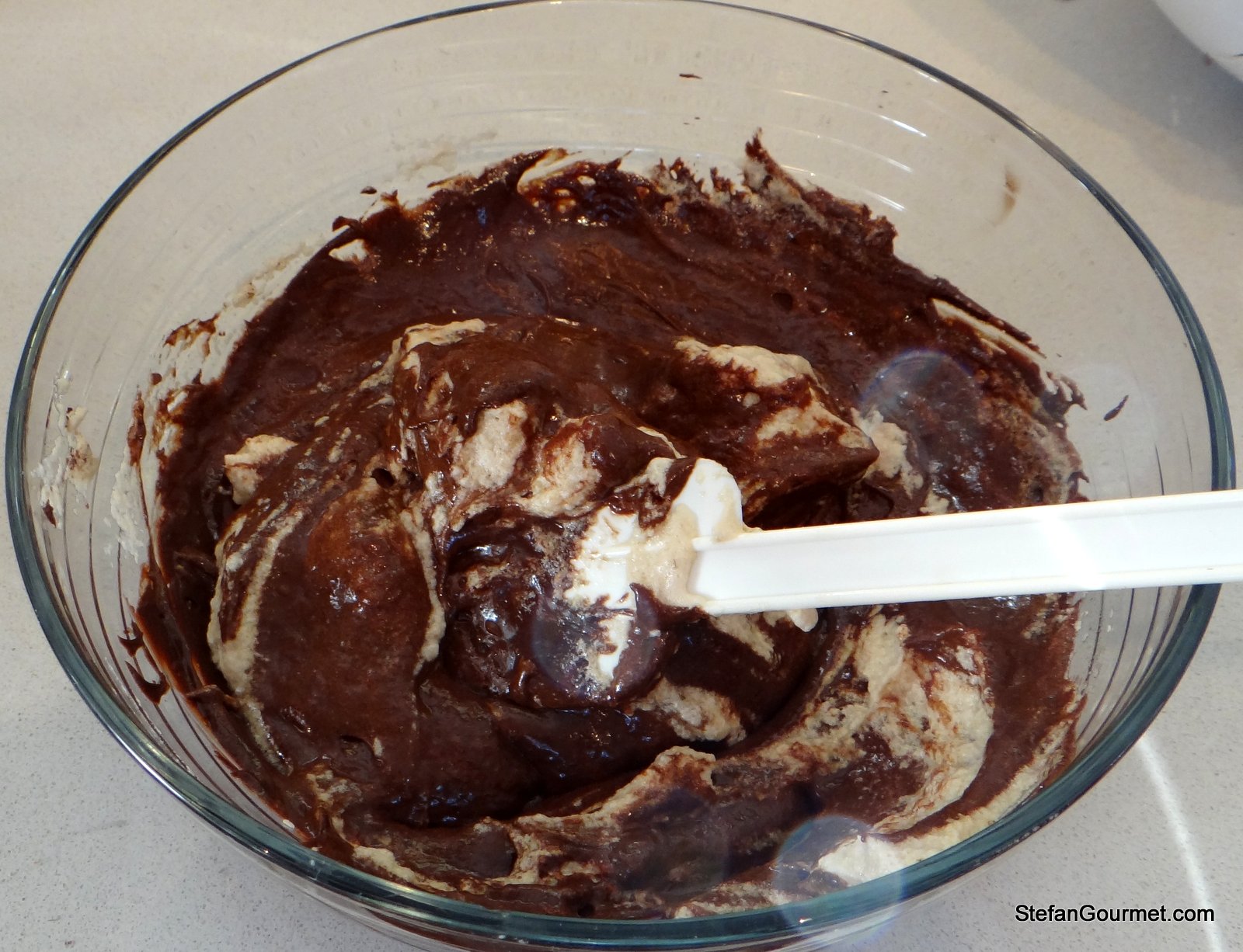 Carefully fold the egg whites into the chocolate mixture in three additions using a spatula, working from the bottom to the top and trying to keep as much air in as possible.