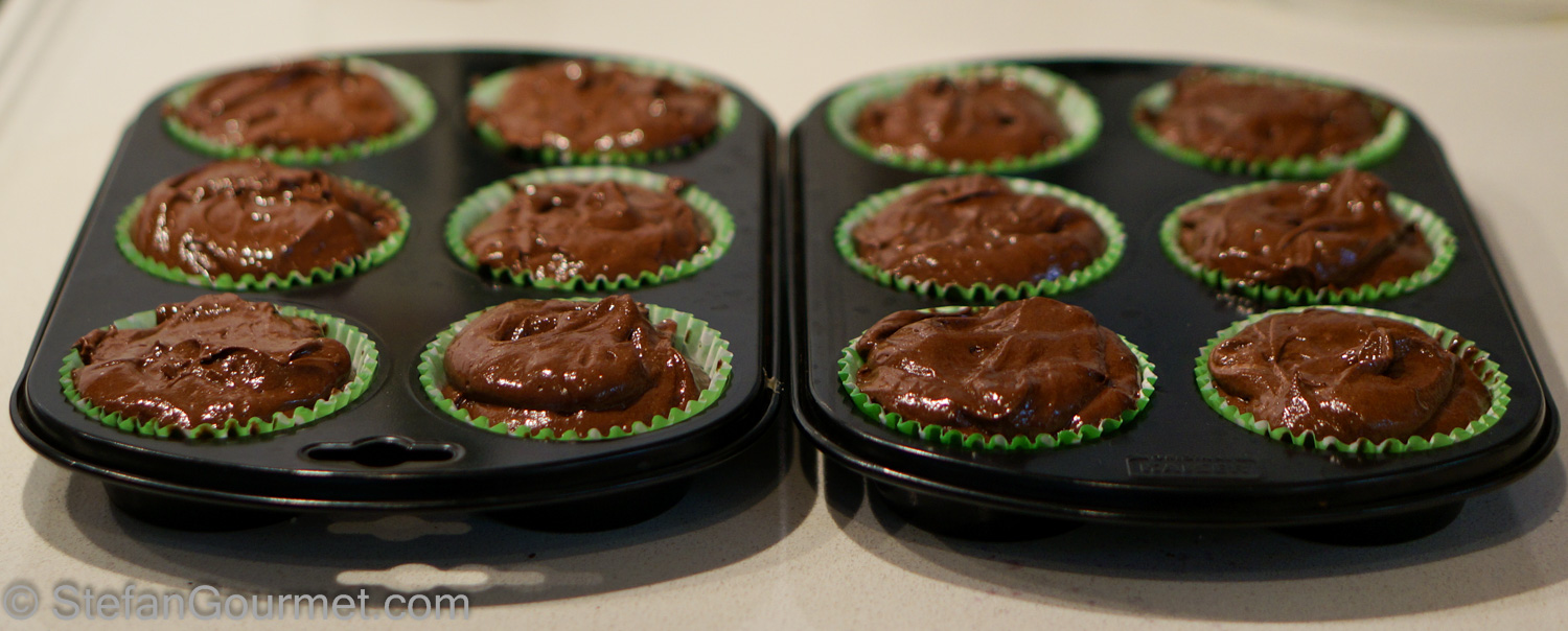 Line a muffin pan with 12 paper liners and divide the batter among them.