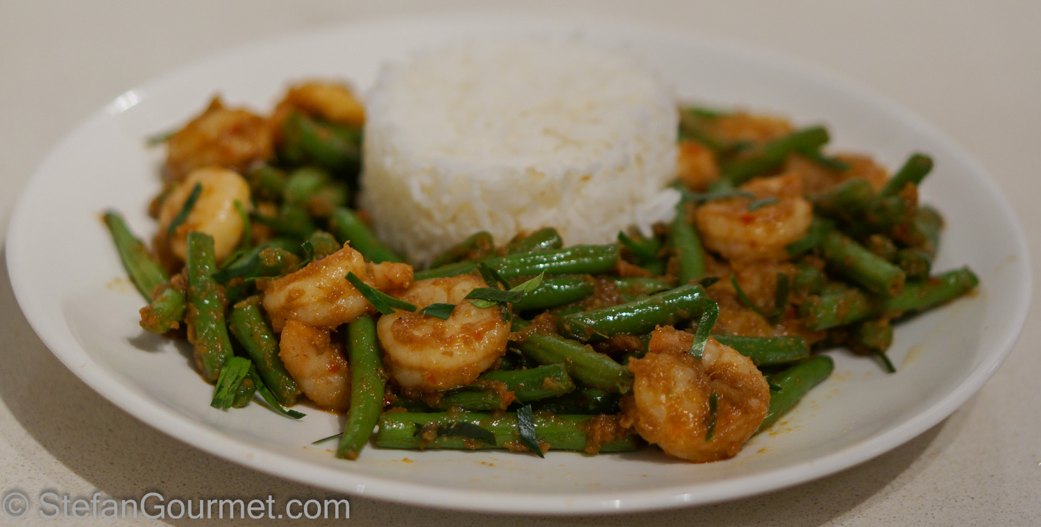 Shrimp and Green Beans with Thai Red Curry Paste (Pad Prik Khing Goong)