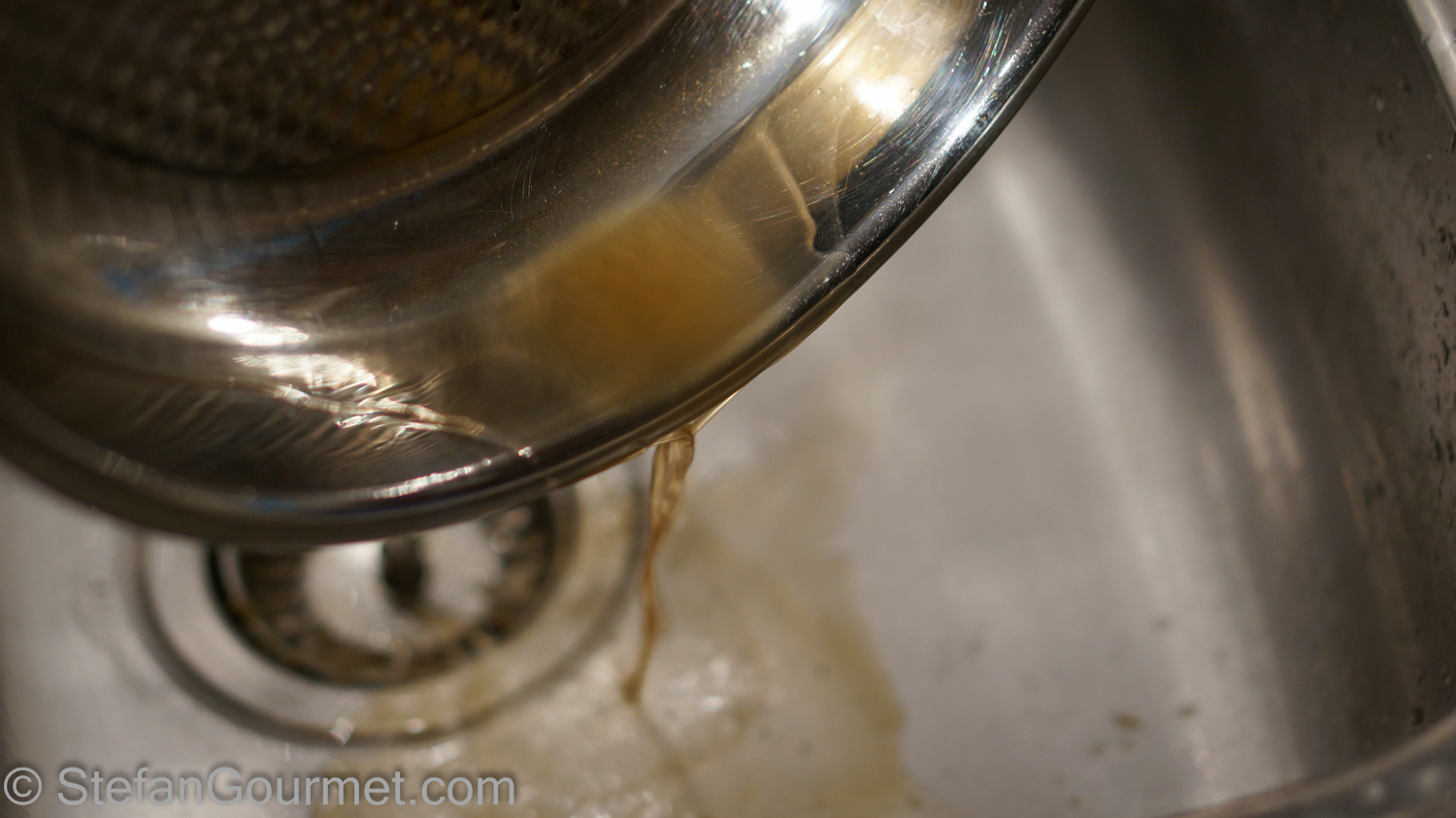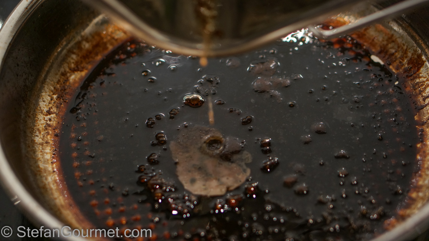 Meanwhile, prepare the sauce. Start by discarding the oil from the pan.