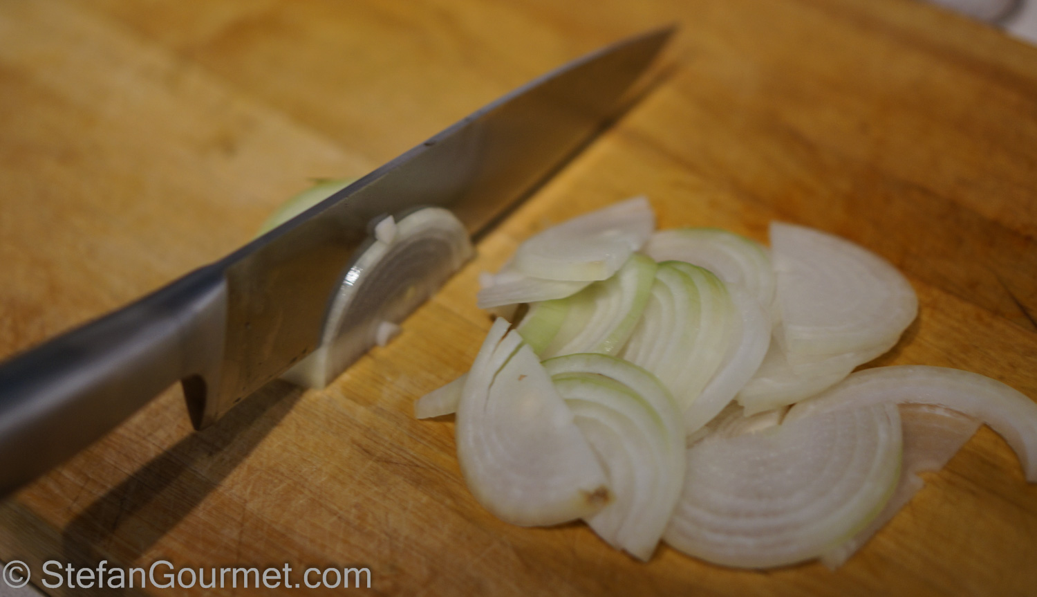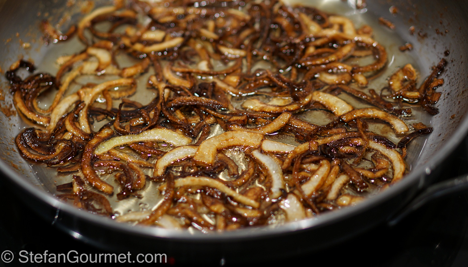 Continue to stir until the onions are evenly browned. (I should have sliced them more evenly.)