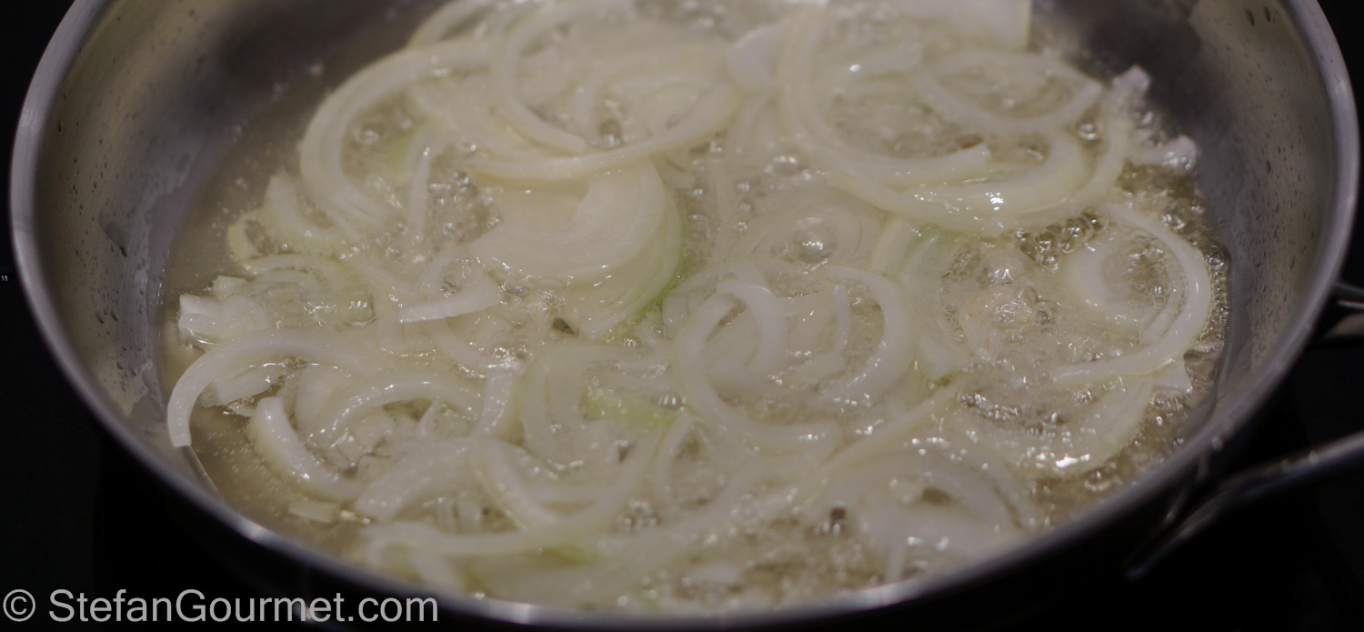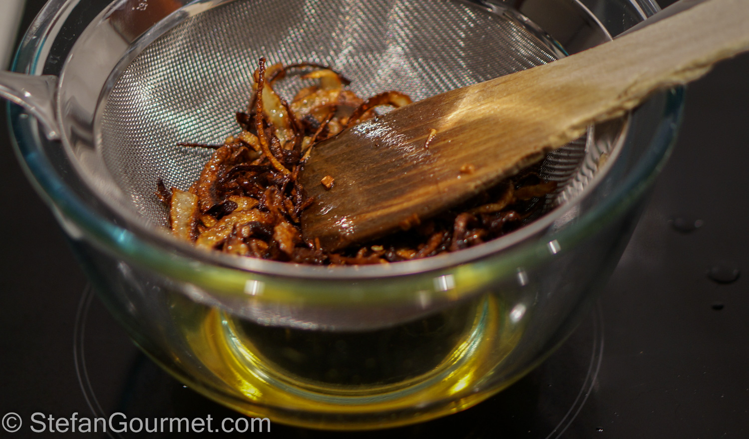 The recipe for the fried onions makes about 6 times the amount needed for this recipe, and also produces onion oil. Instead you could of course make just enough to use for the stock only.