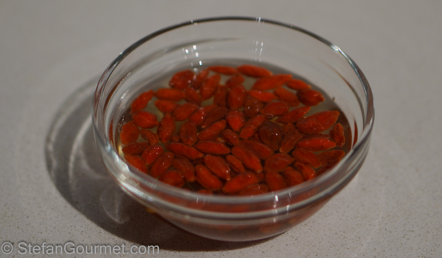 Soak the goji berries/boxthorn seeds in hot water for 10 minutes.