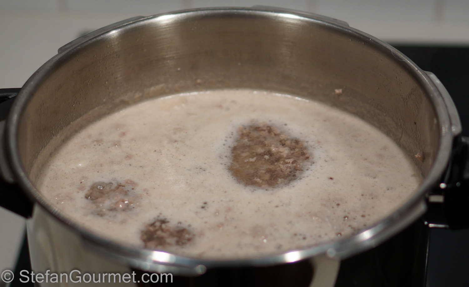 Close the pressure cooker (if using), bring to pressure, and cook for 2 1/2 hours.