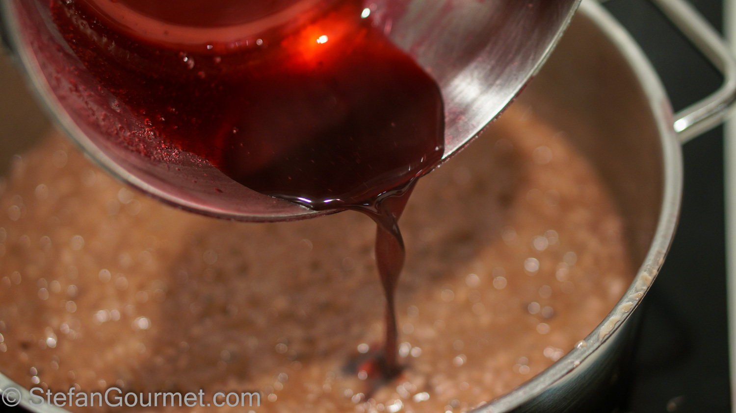 After about 10 minutes, add 2/3 of the warm pomegranate juice.