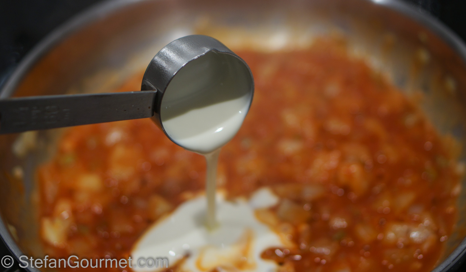 …and the cream. Stir to incorporate and cook for a minute or so until warmed through.