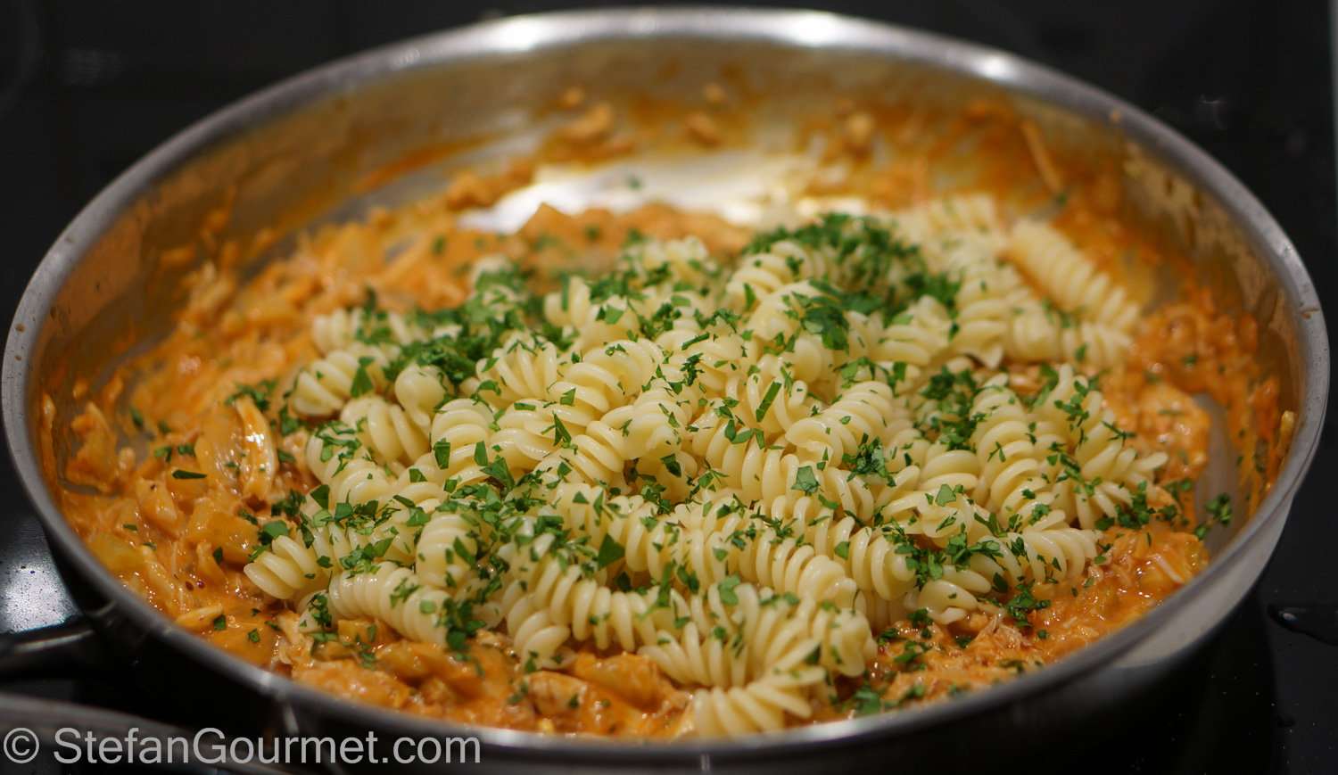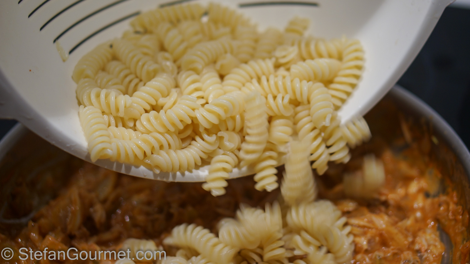 Toss until the fusilli have ‘absorbed’ the sauce.