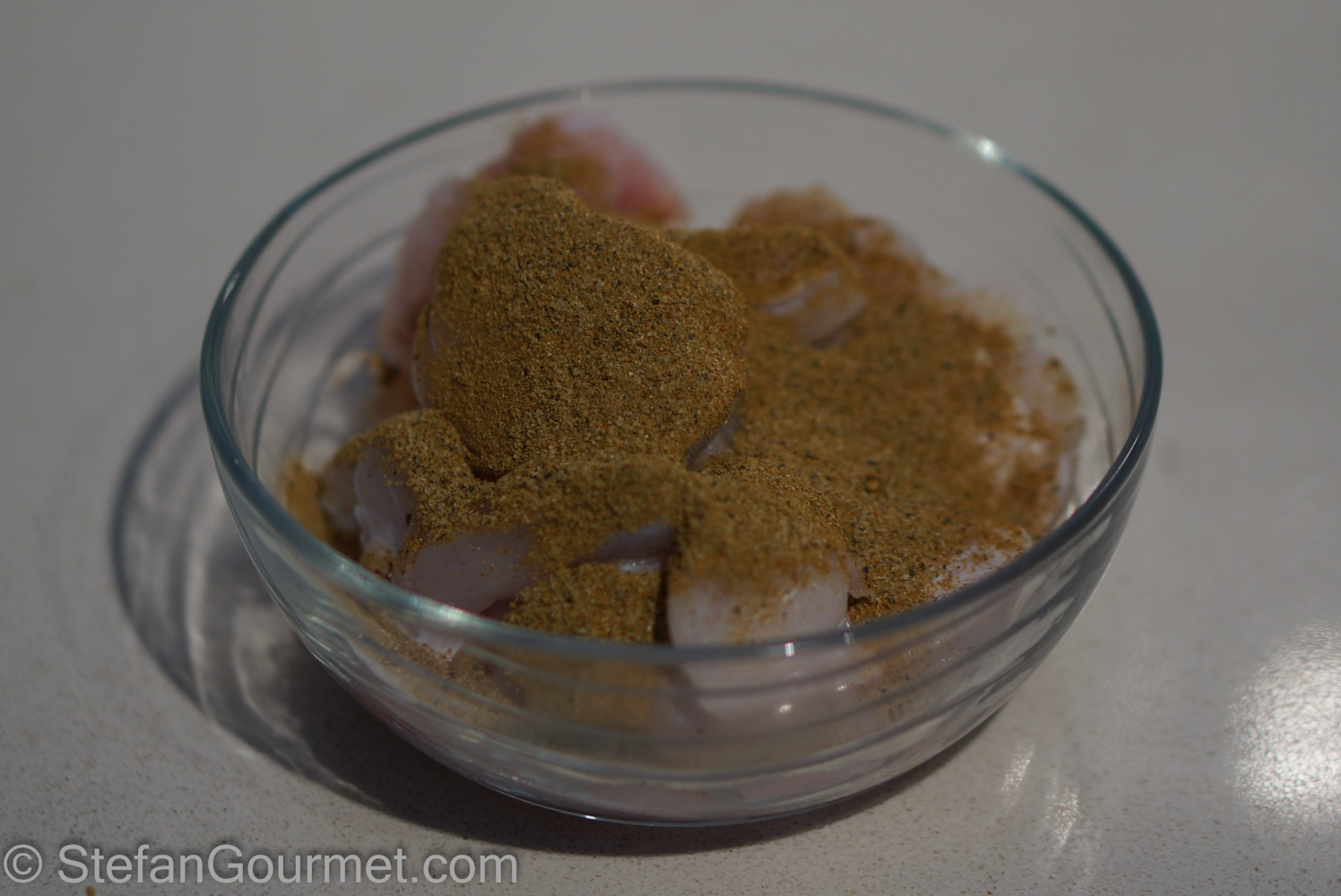 …and toss to coat the fish evenly with the spice mix. Refrigerate for a couple of hours to marinate.