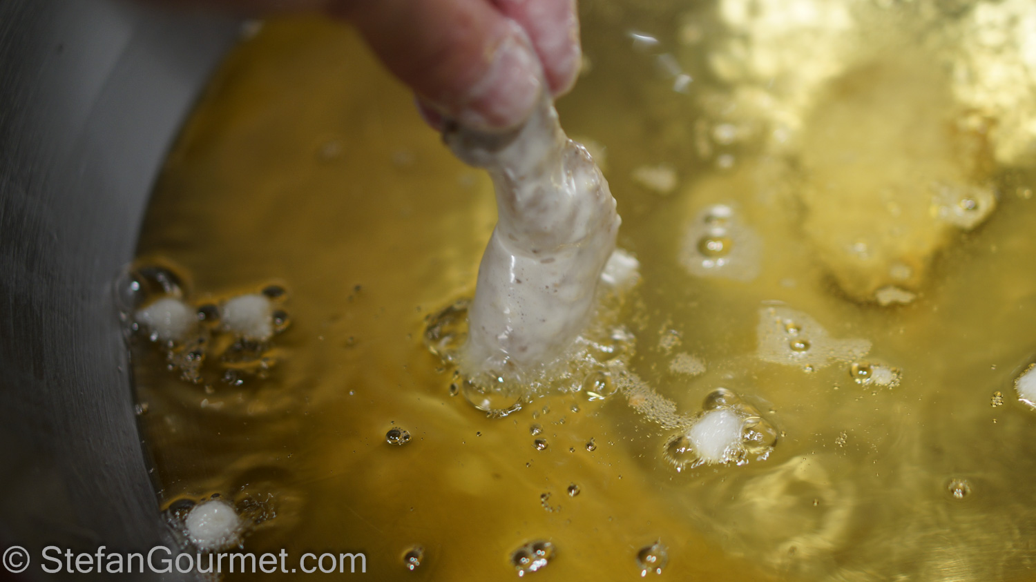 Wait until the oil is the right temperature (180ºC/350ºF).