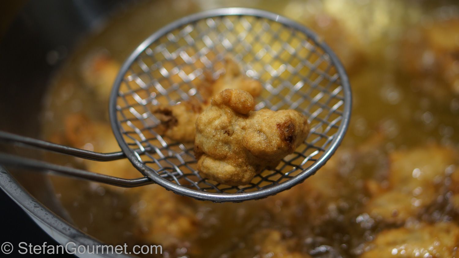 The spice mix gives the fish a lot of flavor, while the batter keeps the fish moist. It is not surprising kibbeling is so popular! Here’s how to make your own (based on this recipe (in Dutch)). And don’t worry if you can’t get cod cheeks, other pieces of white fish will also do.