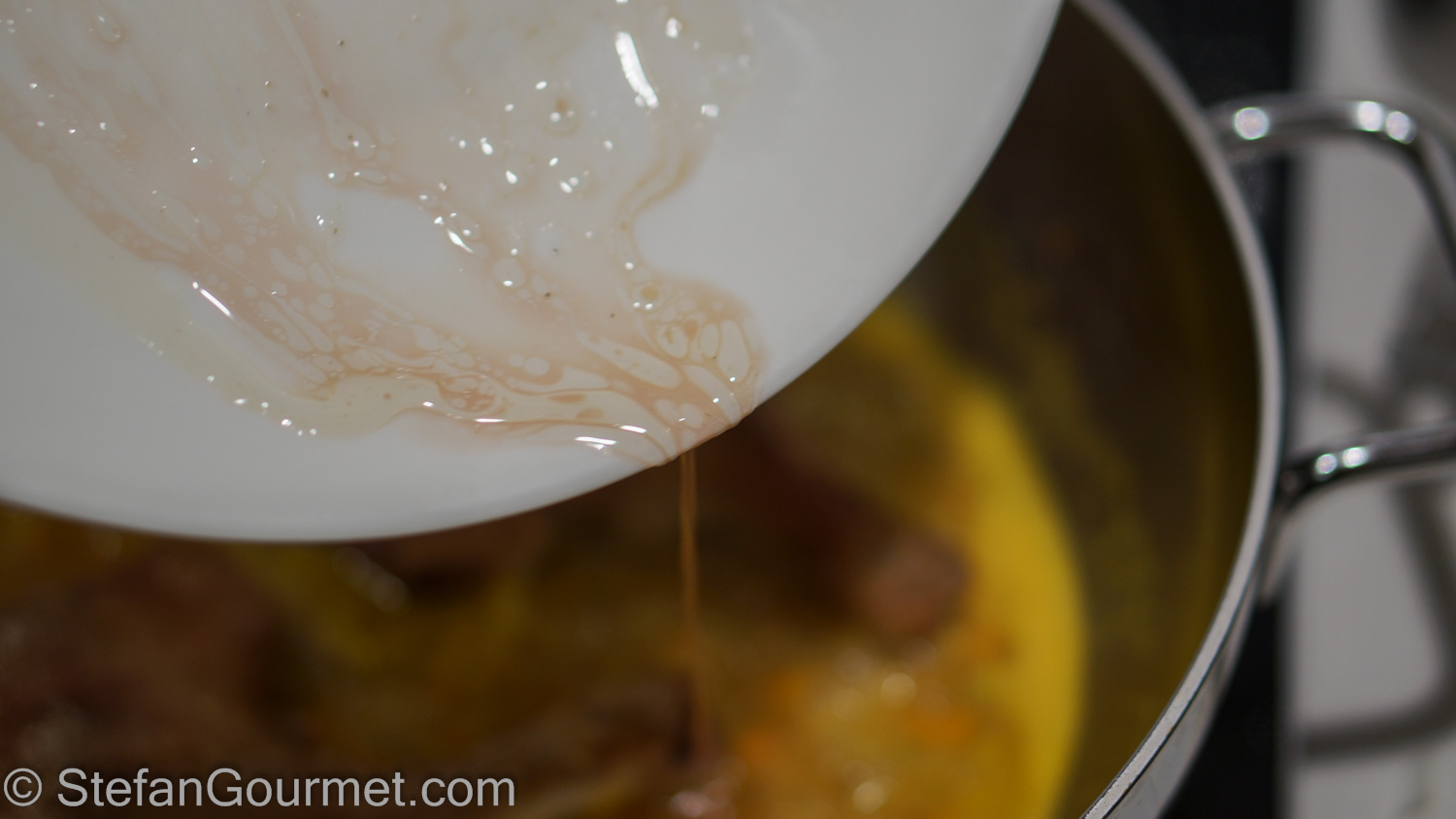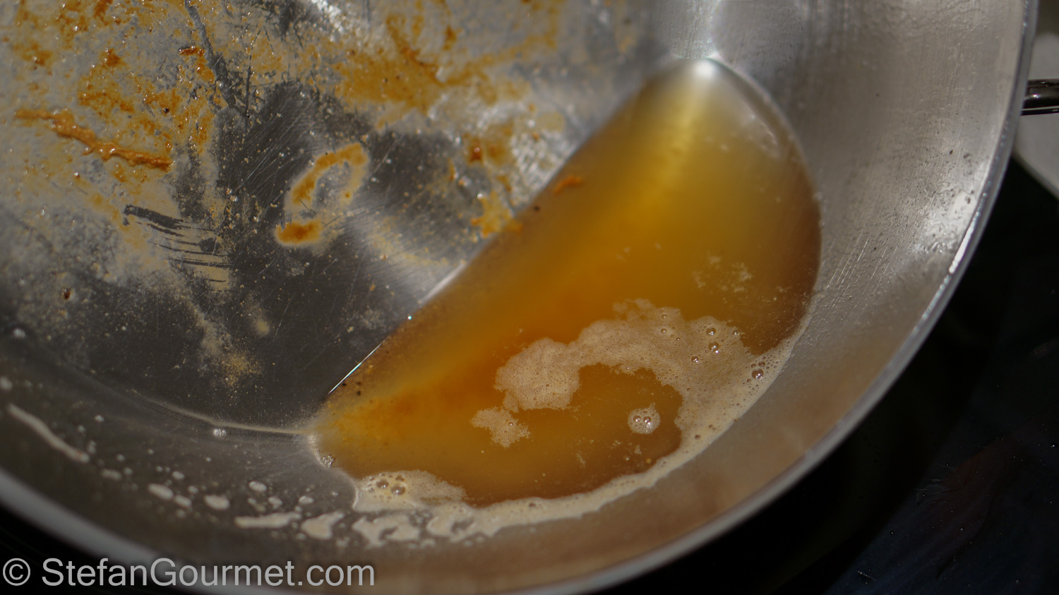 Scrape with a wooden spatula to get all the browned bits into the sauce.