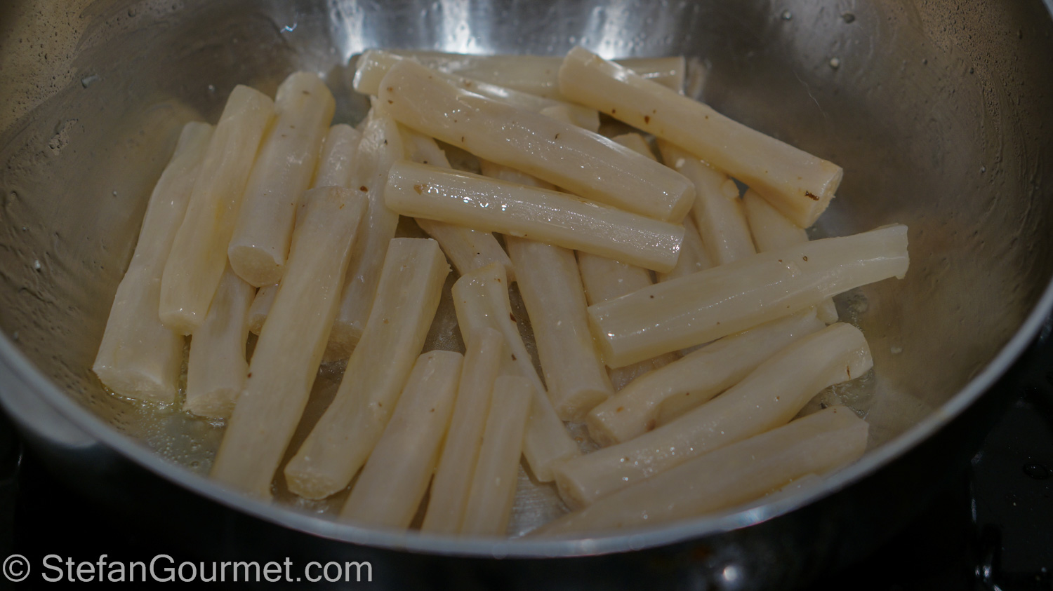 Once the salsify are cooked, briefly rinse them and reheat them with the remaining tablespoon of butter.