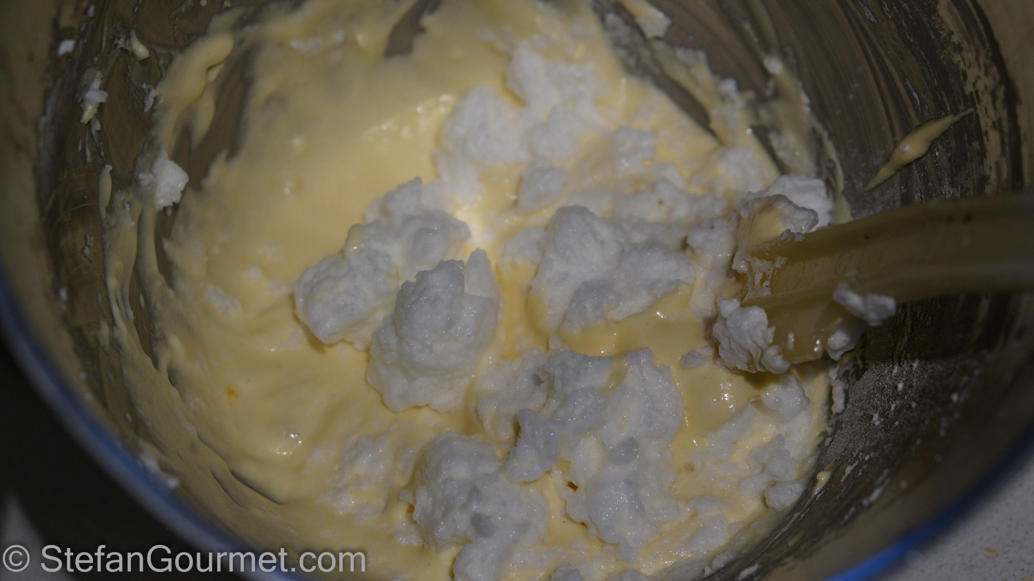Keep folding until the egg whites have been incorporated completely.