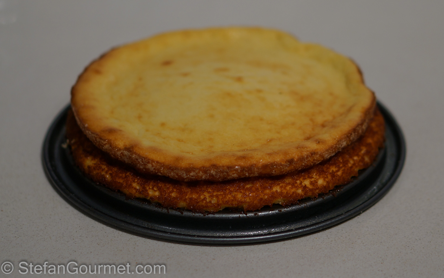 A friend who came over for dinner announced he would bring a late harvest Sauvignon Blanc, a Sancerre to be more precise. This is the dessert that I came up with to accompany it: cheesecake made from goat cheese. Goat cheese goes very well with regular dry Sancerre, so I figured a cheesecake made from goat cheese would work well with the sweet variety of the same wine. And so it did. I adapted the recipe from this one. It is a nice simple cheesecake without a crust and quite light for a cheesecake.