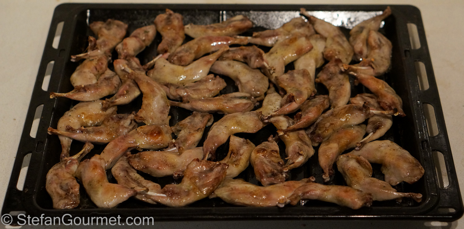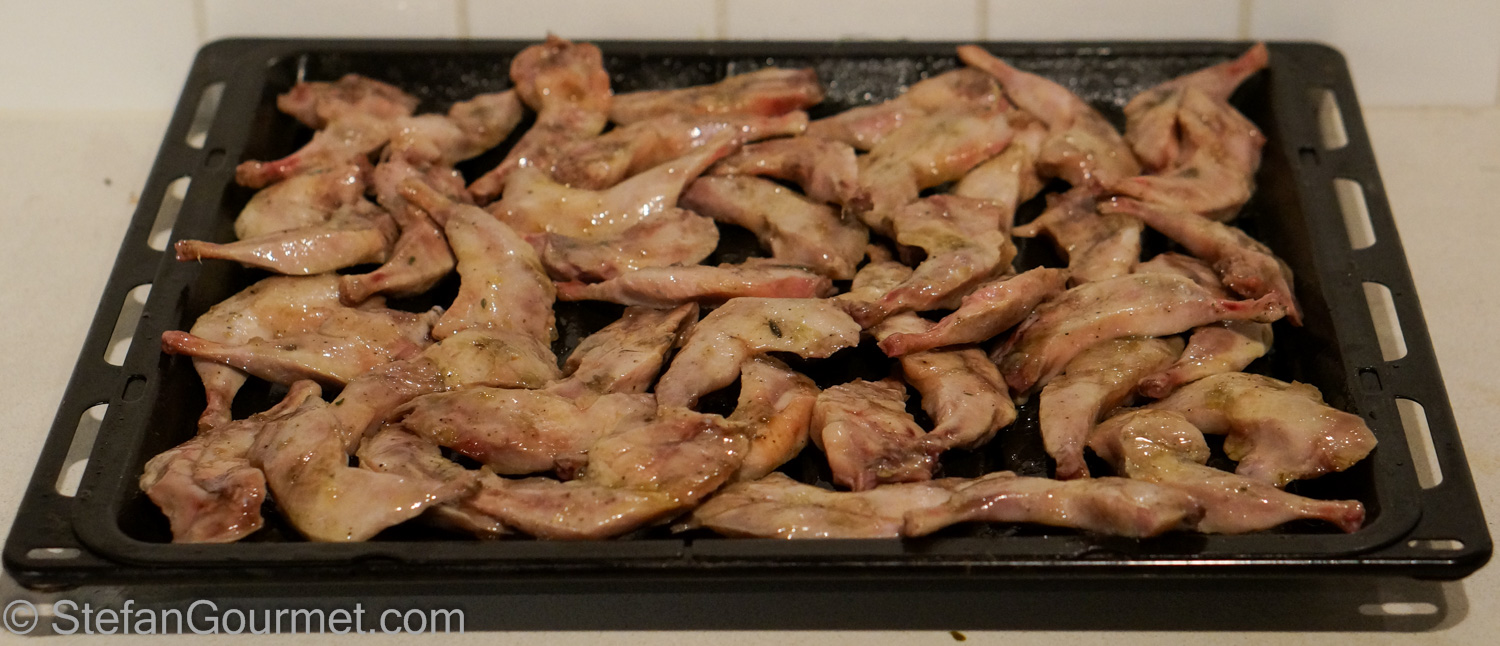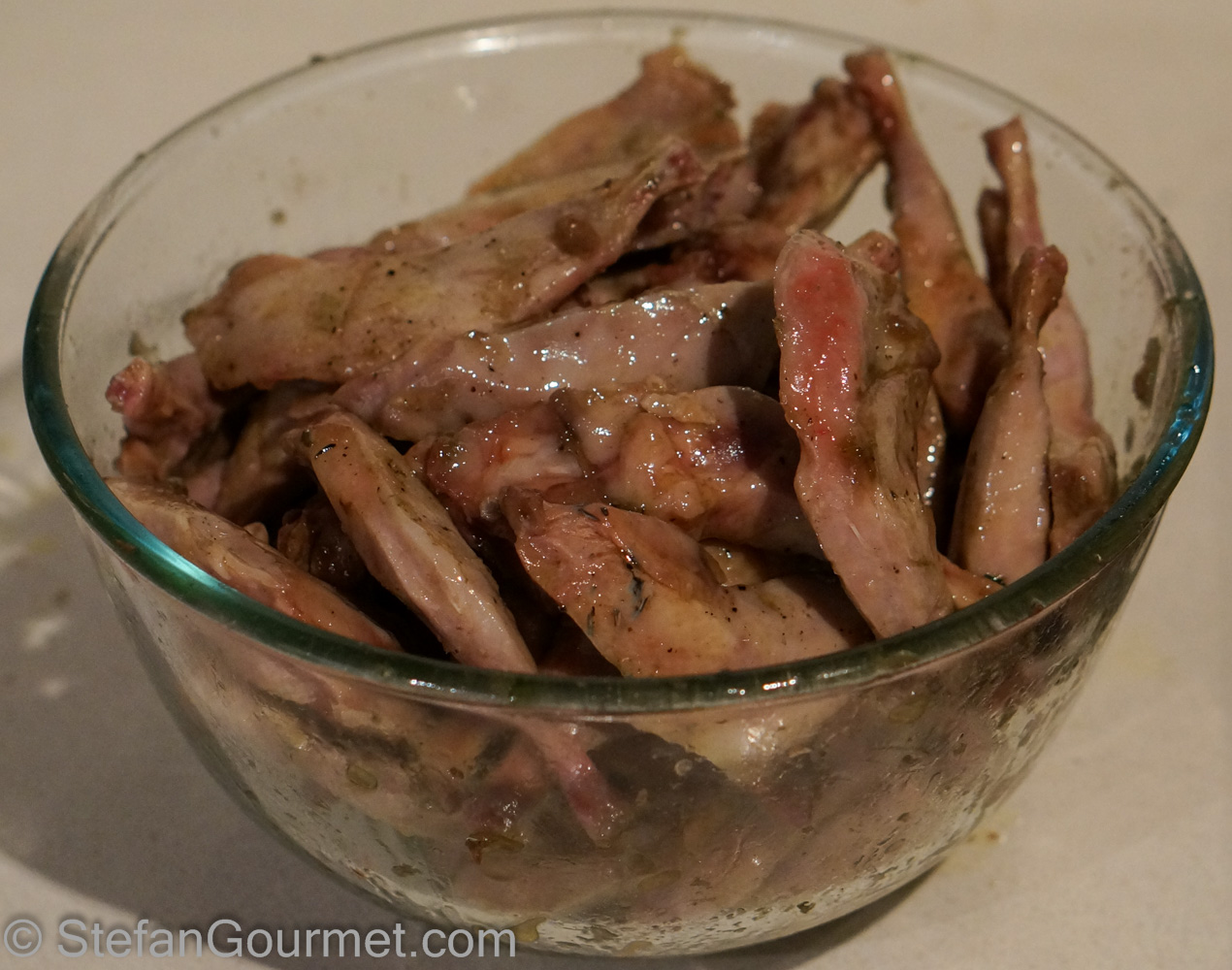 I made 3 kilos of the quail legs (about 120 legs), so I was very happy that I could buy them as quail legs and not as quails… They vanished quickly at the party because everyone liked them. No-one dared ask for ketchup. Here’s what I did…