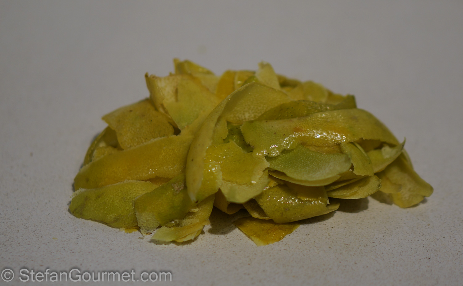 You should end up with about 60 grams (2 oz) of yellow peel after cleaning.
