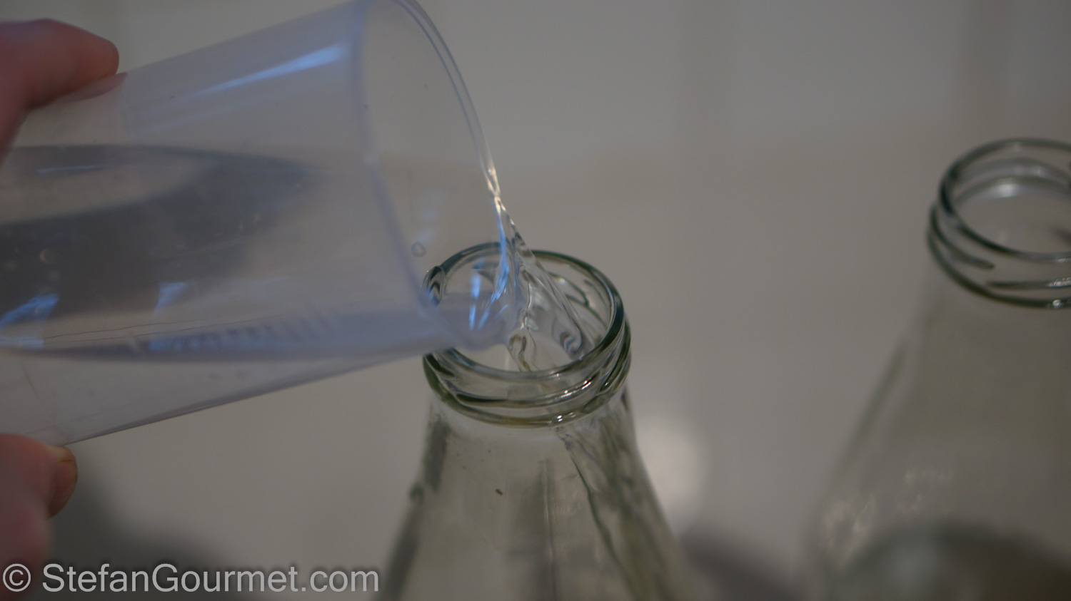 Add 400 ml (or 200 ml per bottle if using 2 bottles) of 95% proof alcohol.