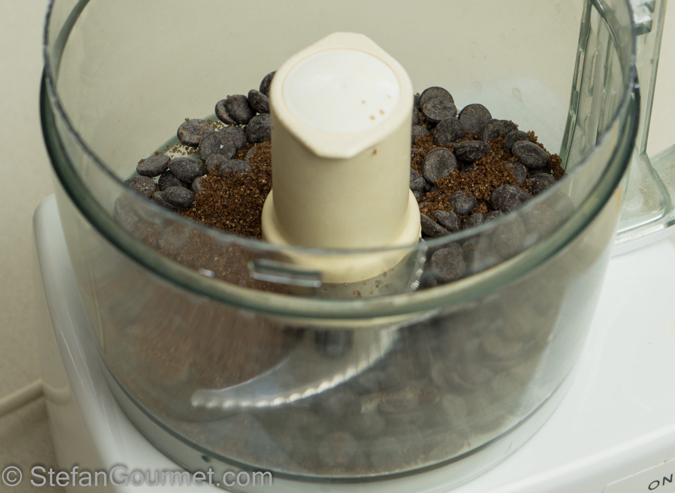 Preheat the oven to 180ºC/350ºF (fan forced). Put the chocolate and brown sugar in the bowl of the food processor, fitted with the metal blade.