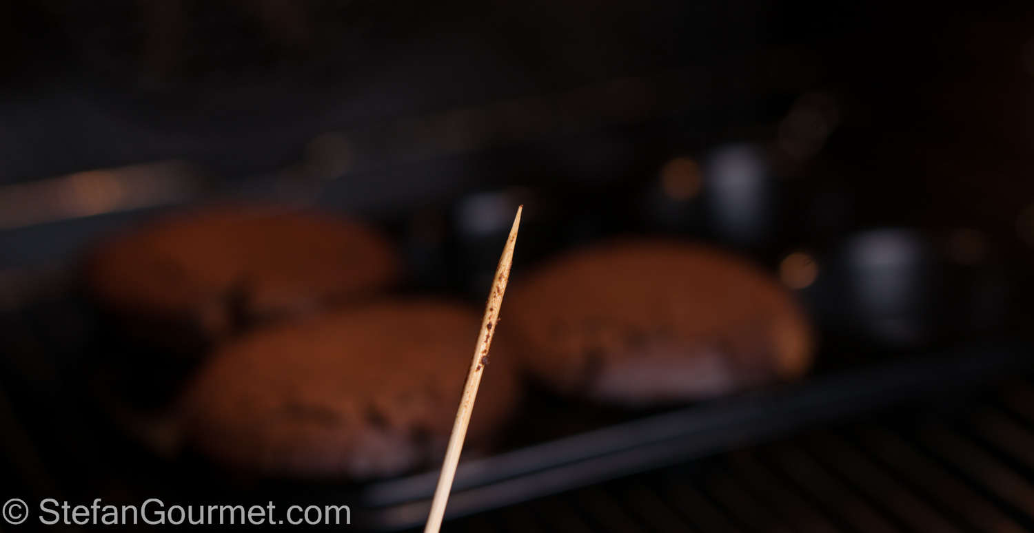 Bake for 20 minutes at 180ºC/350ºF, or until the top is cracked and a skewer inserted in the center comes out with crumbs attached.