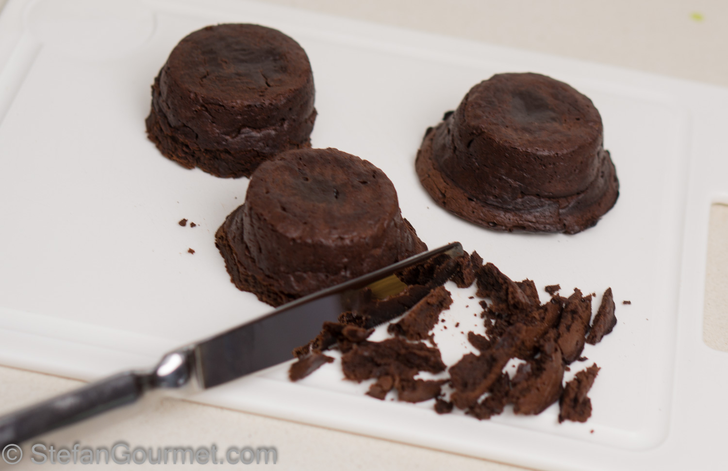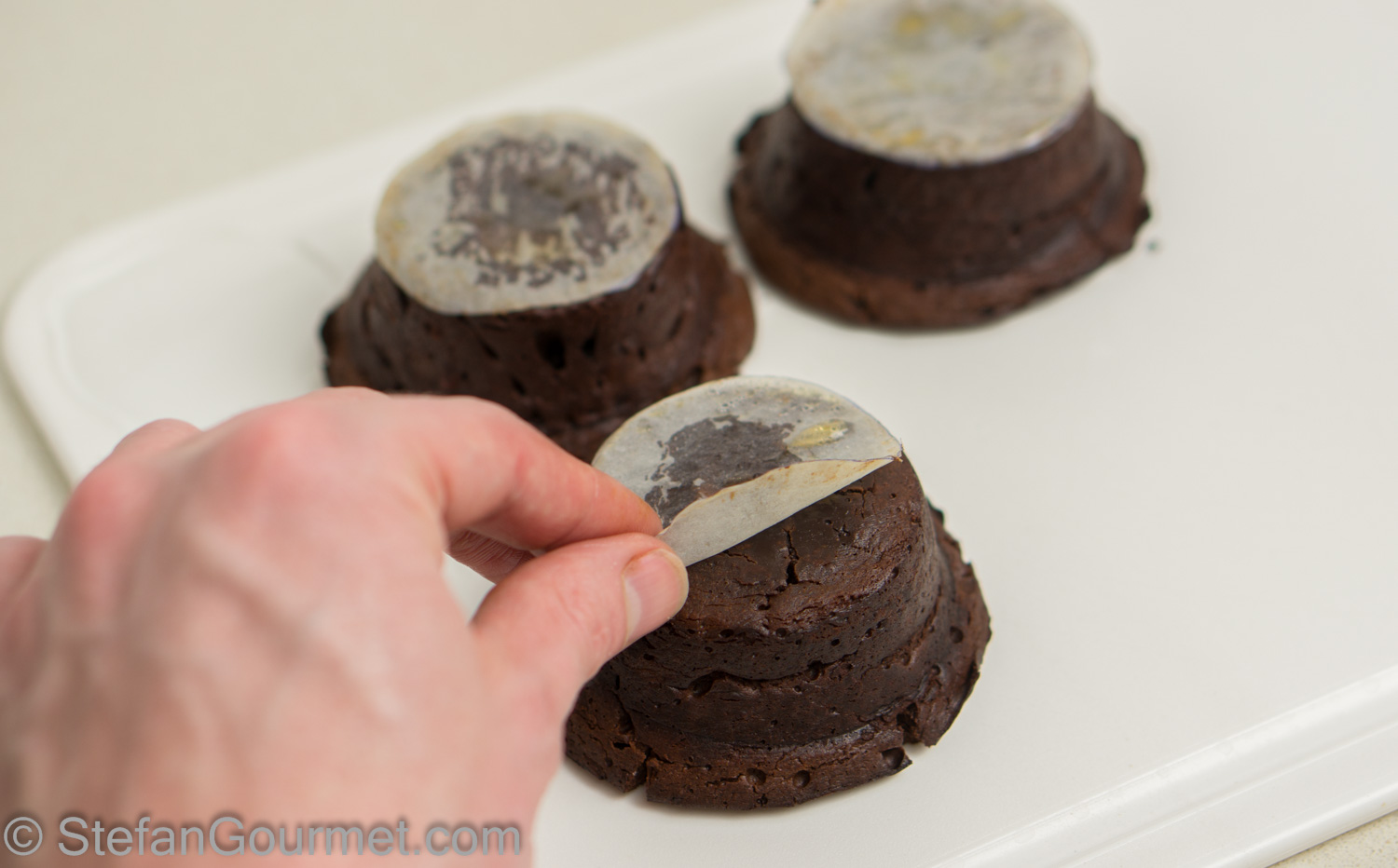 Turn over the tin onto a cutting board and lift up the tins. The tartlets should be left behind.
